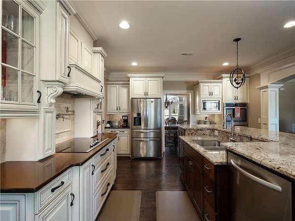 - Built In Oven, Dishwasher, Disposal, Double Oven, Electric Oven, Electric Range, Multiple Water Heaters, Plumbed For Ice Maker, Refrigerator, Smooth Cooktop, Tankless Water Heater