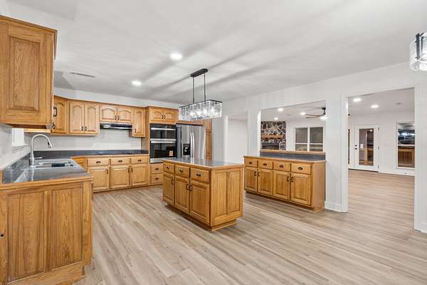 A two-car garage provides ample room for vehicles, storage, and additional space ideal for a workshop or hobby area. The property offers flexibility for outdoor use, future expansion, or additional structures, making it a strong option for buyers looking for land paired with a move-in-ready home.