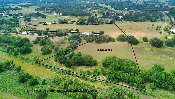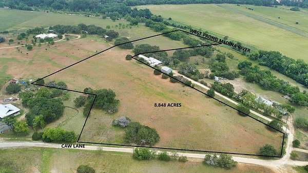 Nestled just one mile from the charming town of Medina, this remarkable 8.84-acre property is the perfect blend of tranquility and accessibility. Easily reached via scenic Texas FM 337 and county-maintained Caw Lane, this UNRESTRICTED land offers boundless potential for a variety of uses. With over 480 feet of beautiful West Prong Medina River frontage, the property boasts a mix of babbling rapids and peaceful pools, all easily accessible through a canopy of towering Pecan trees. This natural paradise provides a serene backdrop for your future dreams. A prime building site among ancient oaks offers sweeping views of the distant hills, creating a perfect setting for your dream home. The fertile, flat pastureland offers ample space for a riding or roping arena, and its rich soil is ideal for planting crops or creating your own orchard. Whether you're envisioning a horse lover's haven, a custom homestead, or even an RV park with river access for guests, this property can bring your vision to life. With its prime location, scenic beauty, and versatile features, this land checks all the boxes for those seeking a slice of rural paradise. Ready to become your Forever Property!