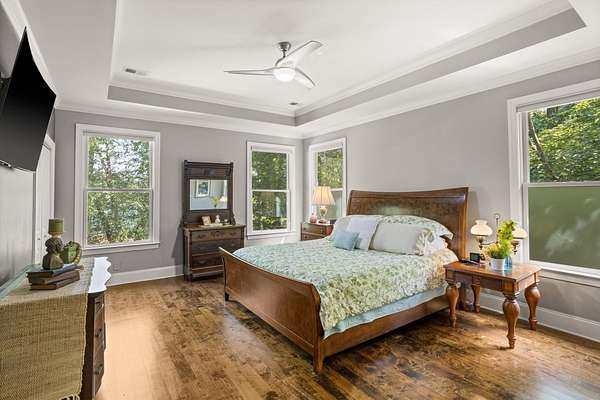 Golfers' Paradise. Boaters' Dream. More than a home--it's a lifestyle. Discover lakefront living at its finest in the Grand Harbor Plantation Community. This 1.52-acre custom home on Lake Greenwood offers serene cove views perfect for kayaking, swimming and relaxing. Ownership includes membership to Grand Harbor Golf & Yacht Club with golf, tennis, pickleball, fitness center, clubhouse and a lakeside Olympic pool. Inside, you'll find soaring 14' ceilings, maple floors and walls of windows showcasing the lake. The open layout features a great room with fireplace, sunroom, formal dining room and a gourmet kitchen with granite counters, gas cooktop and double ovens. The main-floor primary suite includes a spa-like bath and walk-in closet, with a private guest suite on the opposite side. The lower level offers two offices, two bedrooms with bath and a large recreation room. Outdoor living includes a screened porch, lighted walkways and a boathouse with Trex deck and remote-controlled lift. A 3-car garage with an EV charging station and dog-wash, irrigation system and beautiful landscaping. This home is move-in ready--come see what life is all about at Grand Harbor Planation.