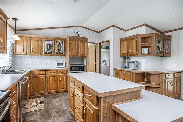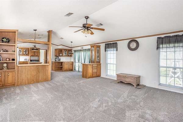 - Built-In Features, Cathedral Ceiling(s), Decorative Lighting, Double Vanity, Eat-In Kitchen, Kitchen Island, Open Floorplan, Walk-In Closet(s)
