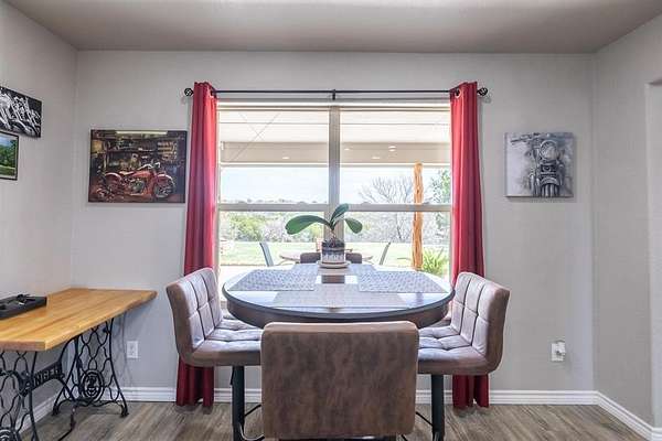 Nestled on 32.73 acres in Elm Valley, this Lueders stone home delivers the perfect blend of comfort and country lifestyle. The 2,242 sq ft main home offers 4 bedrooms, 3 baths that features luxury vinyl plank flooring throughout, and a warm, inviting living space with a wood burning fireplace. The kitchen has plenty of room to cook and for gathering, with granite countertops and rich cherry cabinets, island with electrical outlets, breakfast bar, double sink, and updated oven and microwave (Dec 2025). Enjoy two dining areas, a large utility room, and an attached 2-car garage. Step outside and take in breathtaking views, unmatched privacy, and room to roam. The property includes a 20x30 shop, 1,200 sq ft guest house with 2 bedrooms, 1.5 baths, and its own space, sprinkler system in the front yard, shooting range, seasonal creek and spring, and abundant wildlife including deer, turkey, and hogs. Property offers flexibility and can be purchased with approximately 5 acres or with the full 32.73 acres (MLS#21209793), with additional acreage available separately. Located in Merkel ISD with potential transfer to Jim Ned ISD (buyer to verify).
