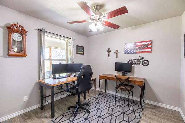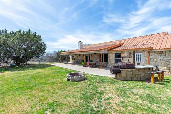 Nestled on 32.73 acres in Elm Valley, this Lueders stone home delivers the perfect blend of comfort and country lifestyle. The 2,242 sq ft main home offers 4 bedrooms, 3 baths that features luxury vinyl plank flooring throughout, and a warm, inviting living space with a wood burning fireplace. The kitchen has plenty of room to cook and for gathering, with granite countertops and rich cherry cabinets, island with electrical outlets, breakfast bar, double sink, and updated oven and microwave (Dec 2025). Enjoy two dining areas, a large utility room, and an attached 2-car garage. Step outside and take in breathtaking views, unmatched privacy, and room to roam. The property includes a 20x30 shop, 1,200 sq ft guest house with 2 bedrooms, 1.5 baths, and its own space, sprinkler system in the front yard, shooting range, seasonal creek and spring, and abundant wildlife including deer, turkey, and hogs. Property offers flexibility and can be purchased with the full 32.73 acres or with approximately 5 acres (MLS#21210044), with additional acreage available separately. Located in Merkel ISD with potential transfer to Jim Ned ISD (buyer to verify).