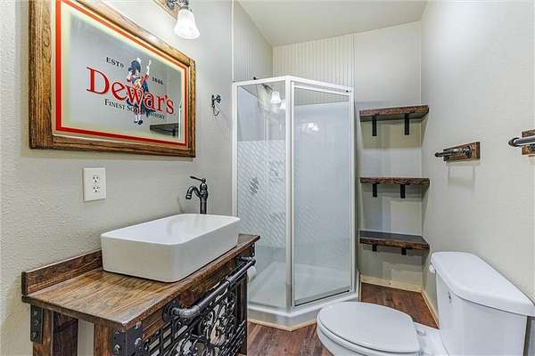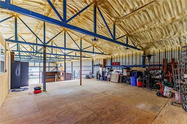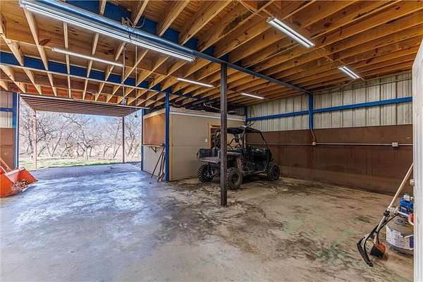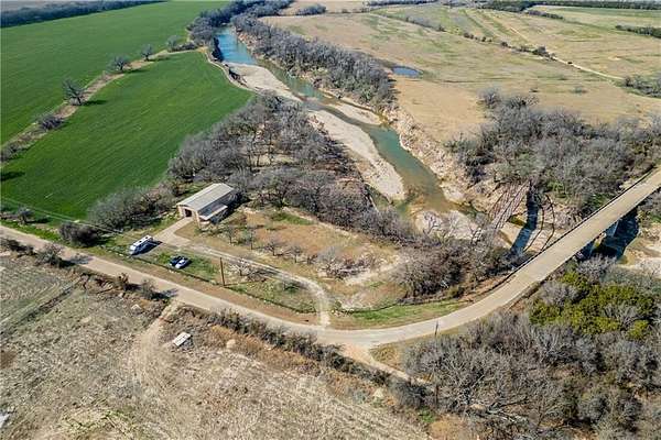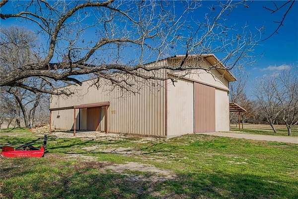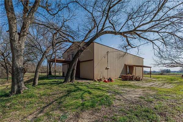 Discover the perfect blend of functionality and serenity with this exceptional 3,200 SF riverfront shop and living quarters, situated on 4.29 acres along the scenic North Bosque River. The shop boasts 2,000 SF of storage space with soaring 20-ft sidewalls, 16-ft tall front doors, and 10-ft side and back doors, providing ample room for equipment, vehicles, or workshop needs. It is powered by 200-amp service, including an RV plug for added convenience. The 1,200 SF workspace includes a full bathroom, making it a highly versatile space for various projects or could be converted to more living space. Upstairs, the 450 SF efficiency apartment features a kitchenette, full bath, and a large balcony overlooking the river--offering stunning views and a peaceful retreat. Additionally, there is 750 SF of storage space, which could be converted into additional living quarters or customized to suit your needs. The property also includes a 516 SF covered porch, perfect for relaxing and enjoying the tranquil setting. With direct river access, this location is ideal for fishing, wildlife viewing, and embracing the natural beauty of the area. Whether you're looking for a workshop, storage facility, a unique live/work space, or a potential income producing VRBO, this versatile riverfront property offers endless possibilities. Don't miss this rare opportunity to own a piece of paradise!