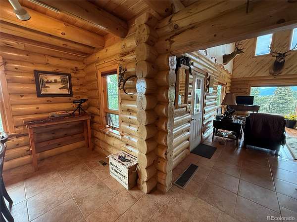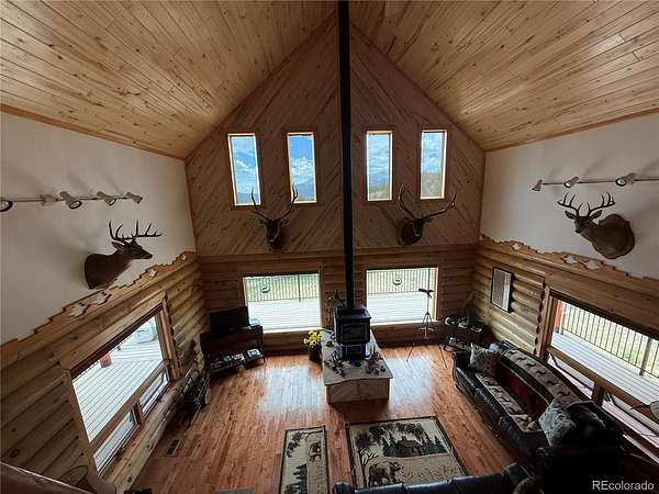This beautiful log home is nestled on this 57 acre lot in sought after Wagon Creek Ranch. Awesome views of the 14,000 ft Mt Blanca range to the west and the Spanish Peaks to the southeast. This home was custom built to detail and master craftsmanship is evident. The great room towers up to the vaulted ceilings with huge windows to the view. The massive log stairway leads up to a spacious open loft area and the 2 bedrooms and a bathroom on the second floor. The 2 bedrooms have their own balcony with great views. The big kitchen with granite countertops and hickory cabinets is a chef's delight, complete with an eating bar and adjoins the huge dining room with 2 dining tables so the entire family can eat together. Master bedroom and bath are on the main floor along with the laundry room off of the entry room. There is a wrap around deck with custom made railings and Trex decking so you can pick the view that you enjoy the most. With 2 extra bedrooms and a 3rd bathroom in the lower level there is plenty of room for a big family or your guests to have their own private level of the house. The house comes furnished with high end furniture with the exception of a few sentimental items. The property is part of a 17,000 acre ranch that has great elk, mule deer and bear hunting. Currently you can hunt about 9000 acres of gated private land. This particular lot is in one of the best elk hunting areas on the entire ranch. There are 2 other lots that border this property that are available also for a total of 138 acres of prime hunting land. You must see this one to appreciate the quality of this home.