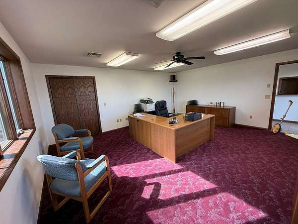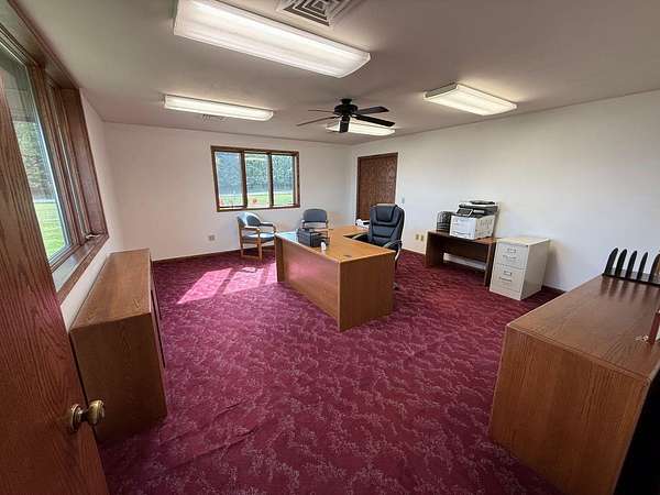 Excellent commercial property in the city's industrial park on approx. 2.49 acres. Building #1, built in 1992, includes a 19x16 office w/walk-in closet, 19x15 office w/storage closet, 15x8 breakroom, and an accessible restroom. Outfitted with central air and a natural gas furnace, it also has an attached 50x78 heated/insulated building w/9x12 overhead door, service door, 10' ceilings, and Modine heater. Office furniture and equipment are included, making this move-in ready. Building #2, a 60x80 structure built in 2010, is fully insulated and features a 10x12 overhead door, two service doors, and 11' side walls. It contains a 13x12 heated/air-conditioned office, electric heat, and stubbed bath for future use. Two paved parking areas provide space for 11 and 14 vehicles.