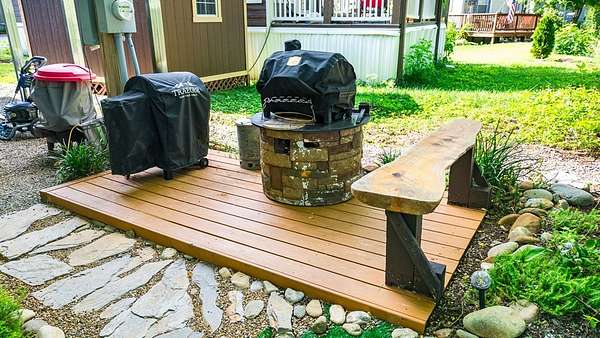 Tranquil Lot with Pond Frontage & 5th Wheel - Ready for Enjoyment! Welcome to this peaceful lot nestled in a charming small-home neighborhood, offering direct frontage on a serene pond--perfect for relaxing evenings and morning coffee with a view. This unique property includes a well-maintained 2017 Columbus 5th wheel, covered by a sturdy metal canopy installed in 2024, providing year-round comfort and protection. Unwind in the private hot tub overlooking the water, and take advantage of the additional storage buildings that convey with the property. Whether you're looking for a weekend retreat or a low-maintenance primary residence, this lot offers a rare blend of comfort, convenience, and natural beauty. Schedule your showing today to explore this turnkey outdoor escape!