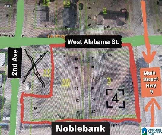 Est $285/moCommercial lot on Hwy 9 (AKA Main Street) in beautiful downtown Piedmont, Al. Next door to Noble Bank. Very close to The Chief Ladiga Trail and schools. This is avery rare find. All utilities are available. Lot is flat and mostly cleared. This is a perfect location for you to start that business you have always wanted to start. There are 2 parcels included in the sale: PIN's 40374 0.38 Acres & 40534 0.29 Acres