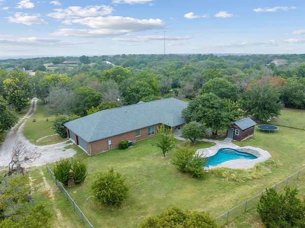 Discover your own private retreat on 6.31 fully fenced acres...bring the farm!! Offering both comfort and tranquility and just minutes from town. This spacious 5 bedroom home features two potential primary suites with their on private bathrooms, perfect for multi-generational living or hosting guests in style. You will find lots of countertop and cabinet space in the spacious kitchen, complete with a walk in pantry. Step outside to enjoy the ultimate backyard oasis, complete with a sparkling dive pool, ideal for summer gatherings and relaxing weekends at home. The land provides plenty of room to roam, explore, and even expand - whether you envision a garden, hobby farm, or simply a place to soak in the peace of nature...this is the one!! All this privacy come with convenience...just 15 minutes from Weatherford for all your dining, shopping, and entertainment, and only 20 minutes from Costco for all your essentials! *ONE YEAR Costco membership included with the sale(: If you're seeking a home that blends quiet country living with modern accessibility, this property could be the perfect fit! Come check it out today!