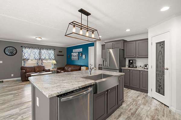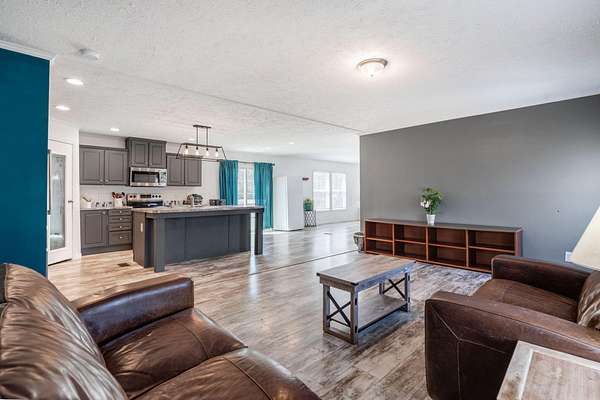 Discover this inviting 4 bedroom, 2 bath home set on just over 2 acres - bright, spacious, and move-in ready. Sunlight fills the open living areas and the large chef's kitchen, complete with stainless steel appliances, a roomy island and abundant cabinetry. The primary suite is a private retreat with a huge closet and en-suite bathroom featuring a double vanity and walk-in shower. Three additional bedrooms share a second full bath. A sizable laundry room with a practical drop zone adds everyday convenience. Enjoy wide open outdoor space for gardening, play or future expansion. Schedule your showing today!