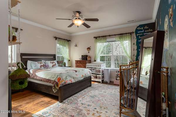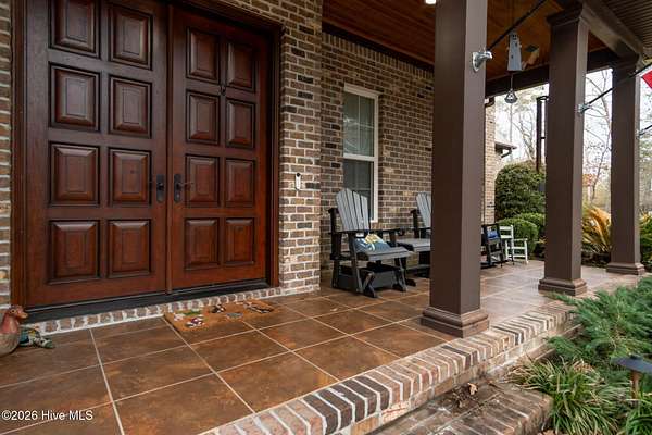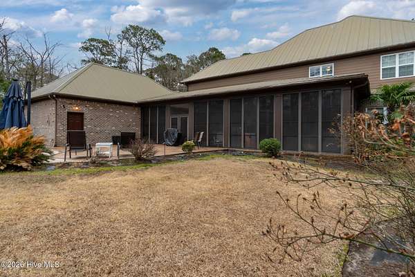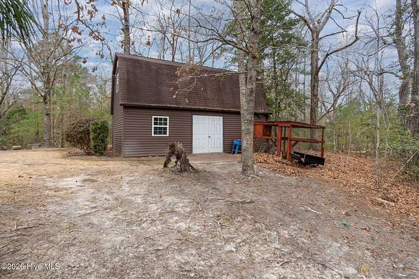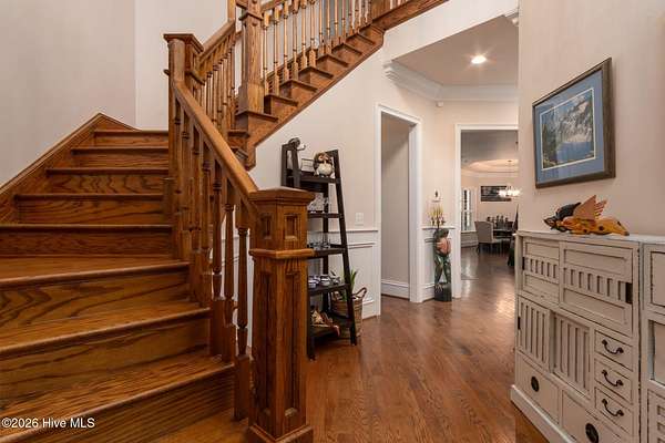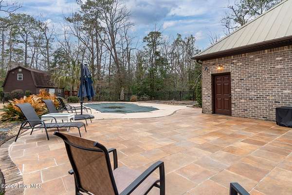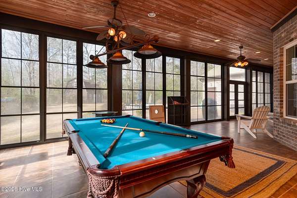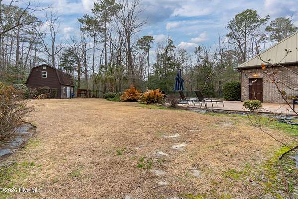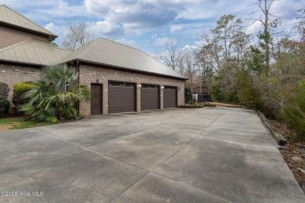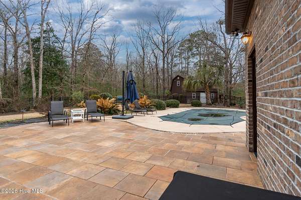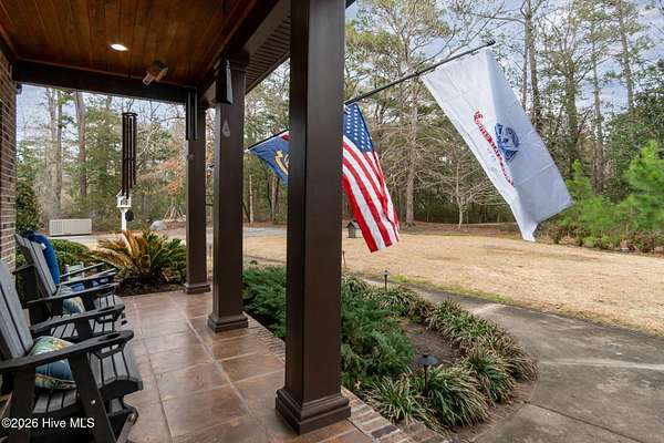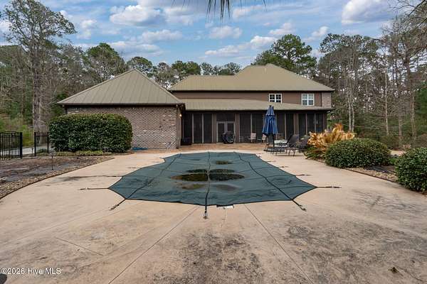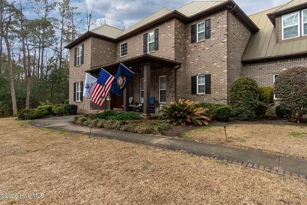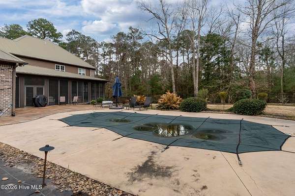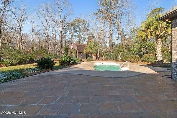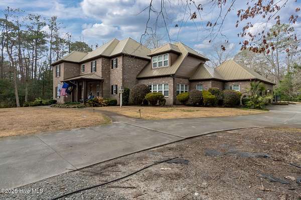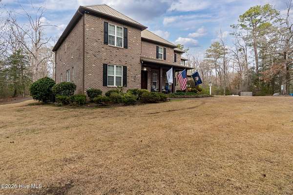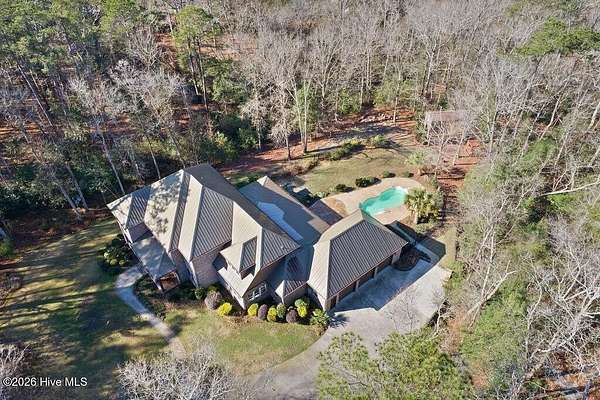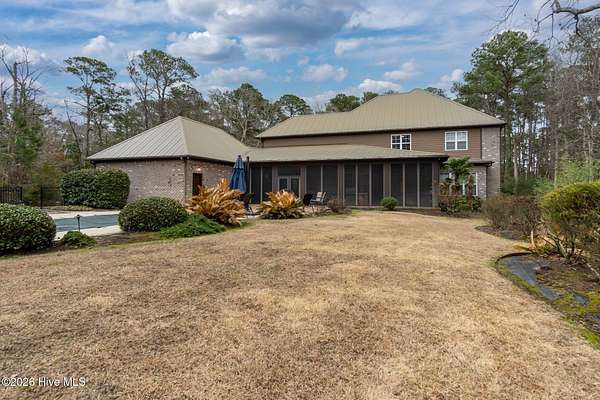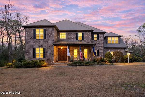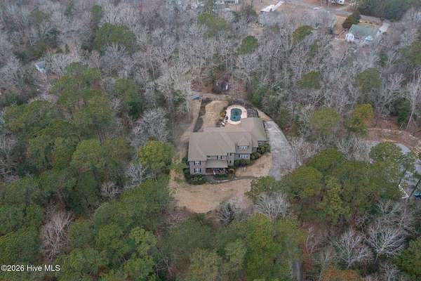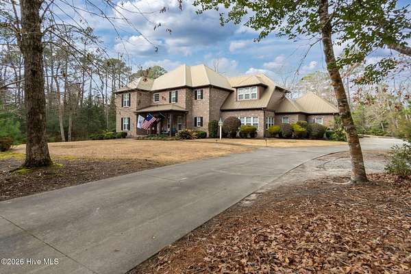 Welcome to this private 5-acre estate in Swansboro offering 5,136 square feet of refined living, privacy, and space to truly spread out. A grand foyer sets the tone with a sweeping wrap-around staircase, soaring 12-foot ceilings, and rich Red Oak hardwood floors. Extensive crown molding and custom finishes showcase quality craftsmanship throughout. The main-level primary suite serves as a true retreat with direct access to a wrap-around sunroom featuring cedar ceilings and peaceful backyard views. The spa-inspired bath includes a tiled walk-in shower, soaking tub, dual granite vanities, and an oversized walk-in closet. Designed for entertaining, the open living and dining areas flow seamlessly into the gourmet kitchen complete with granite countertops, dual islands, soft-closing cabinetry, walk-in pantry, breakfast nook, and newly installed stainless appliances. Upstairs offers four spacious bedrooms, two full baths with granite countertops and tiled surrounds, plus a large bonus room with full bath ideal for a media room, fitness space, or guest retreat. Additional highlights include a private office, oversized laundry room with sink and storage, a three-car garage with attic access and electric vehicle charger, and a detached two-story workshop offering flexible space for hobbies or a studio. Enjoy your own backyard retreat with an in-ground saltwater pool and expansive green space. A durable metal roof, two recently replaced HVAC systems, and a 48 KW whole-home Kohler generator provide long-term value and peace of mind. An exceptional estate offering scale, comfort, and modern reliability just minutes from the coast.