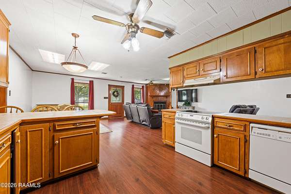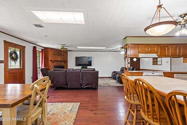 Looking for country life with elbow room between your neighbors, a shop, NO HOA, and room for your chickens to roam...with great access into Lafayette? Welcome home! This one offers a three bedroom/two bathroom house + 24x24 shop + 2.85 acres + stocked pond + wooded area. Upon driving up to the home your shoulders relax as you leave the hustle and bustle of the city. Walking the grounds you'll appreciate the mature trees, covered parking area, covered patio, inviting front porch, and expansive yard with desirable setup of shop behind the home. Walking into the home you'll notice an open concept kitchen/living/dining space and bedrooms at the farther end of the house. Living room offers a wood burning fireplace. Kitchen offers plenty of cabinet space, eat-in bar area, and an adjacent laundry room with room for extra freezers and storage. Bedrooms are decent sizes with closet space. Primary bathroom offers an en suite bathroom. Two secondary bedrooms share a hall bathroom. Shop has plumbing and electrical. Roof - 4 years old. Home qualifies for 0% down payment via Rural Development financing. Schedule your showing today! (Note: Green RV cover in pictures has been removed)