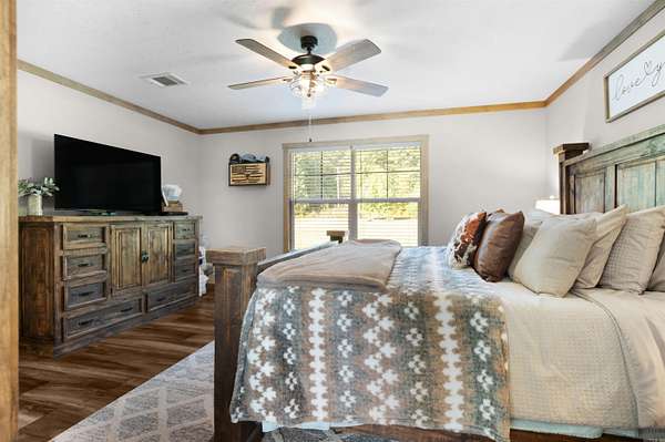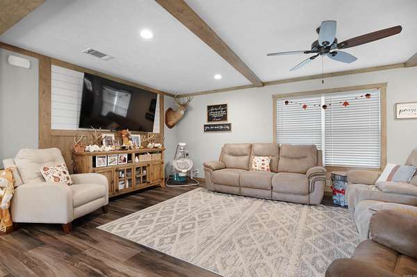 BEAUTIFUL YEAR-ROUND CREEK LIVING!! This 2022 model 3bed 2 bath manufactured home on a permanent foundation on 5 acres is 1/8 of a mile outside the Cortez Gate of Hot Springs Village in Jessieville School District Boat? RV? ATV? Dogs? Chickens? Bring them all!! Enjoy convenient and peaceful country living with a room to store all your toys! If you are a Village property owner, use the convenient access of Cortez Gate to take in a round of golf, tennis, or pickleball, or go fishing! It's the best of both worlds! This beautiful home offers roomy indoor and outdoor living with wide open spaces. The roomy living-room is the perfect place for family-time! The kitchen with a huge walk-in pantry has room to store all your cooking gadgets! A spacious primary suite is inviting with a double vanity and a large tub for soaking. The combination laundry-mudroom is the perfect organized catch-all for storing the necessities. Outside, breathe in some fresh air and the pleasant smells of God's creation under your covered patio, or cool off with a dip in the clear creek water! Don't Miss Out! Schedule your showing today!
