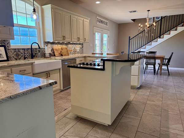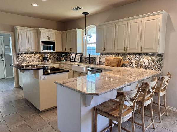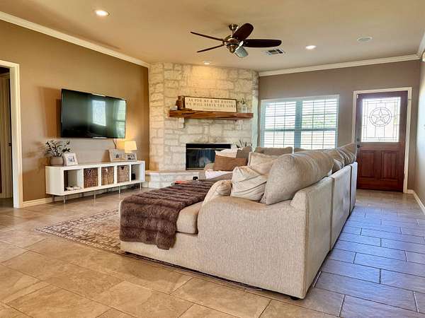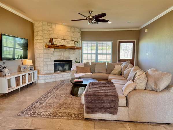 Charming home centered in the heart of the Texas Hill Country. This two-story, 2,400 square foot home hosts 5 bedrooms and 3 full bathrooms. The primary bedroom and bathroom are on the main level, along with 2 other bedrooms and a guest bathroom. Two bedrooms and one bathroom upstairs with a bonus living/game room. The 1,200sqft shop has an epoxy floor, with 420sqft finished out into a workout/office space with a window/wall unit. Above the shop is additional storage and stairs leading up to it. A roughed-in bathroom is also ready for finish-out in the shop. Off the back of the shop is an additional lean-to for additional covered storage. The entire exterior and interior of the home have been painted, cabinets have been painted with new hardware, new fixtures have been installed on the interior, and there is sufficient space for a pool in the large, fenced-in backyard. This home operates off a well and septic system. The well is complemented by a 6,000-gallon storage tank, and the water quality is good. Positioned just outside the city limits, this home is within the Marble Falls school district, AG Exempt, shooting shotguns and pistols is allowed, and only 4 minutes from town. Enjoy the quiet country life, bring your cows, horses, chickens, and deer stands while enjoying the convenience of town. Come enjoy one of the most desirable neighborhoods inMarble Falls. The owner is a licensed real estate agent in the state of Texas. Call today to set up your private tour.