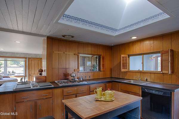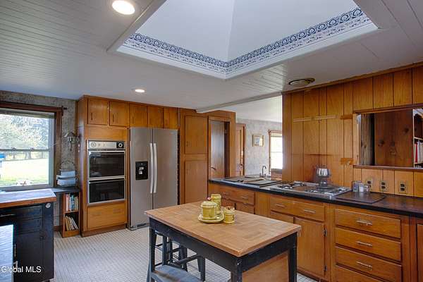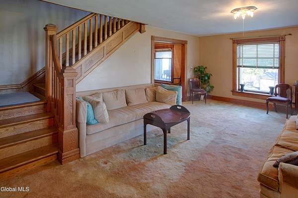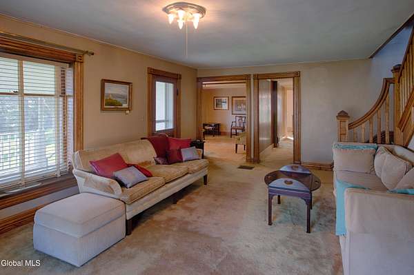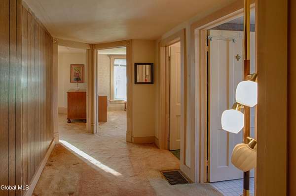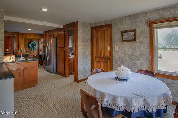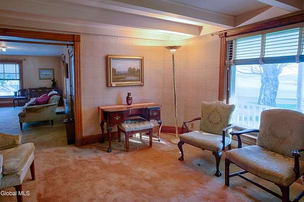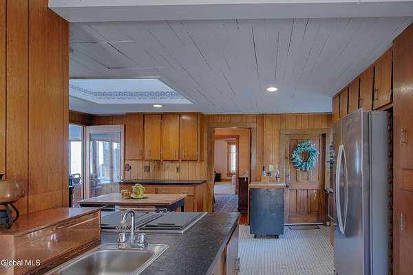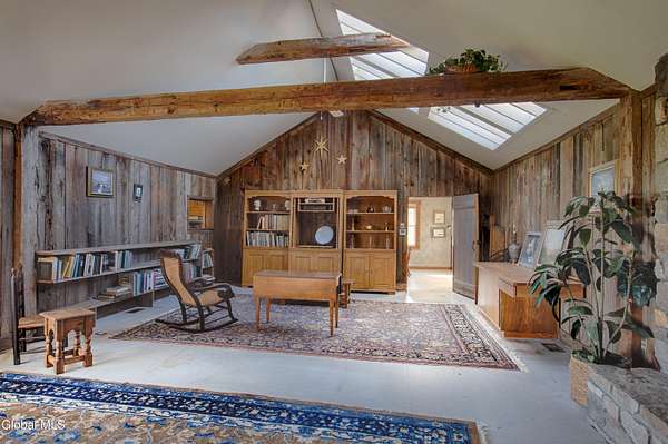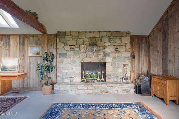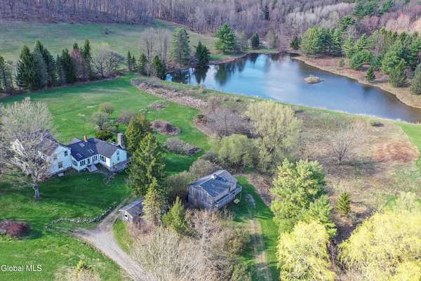 Set atop a rise and surrounded by 16.43 acres of open land and mature trees, this residence offers privacy alongside long-range views of hills and a distant lake. A gated driveway winds past farmland to the house, which sits framed by woods and open sky. Hardwood trim, a stone foundation, and a massive fireplace speak to the home's craftsmanship and it s good bones will support your renovation vision. Porches and decks look out over the landscape, while stone walls, perennial gardens, and connected stairways shape the grounds, leading to a small spring-fed lake stocked with bass. Inside, skylights and tall windows bring in natural light over wide-plank floors and exposed beams. The eat-in kitchen opens to the living spaces and connects to a breakfast room, which adjoins a family room with a cathedral ceiling and fireplace. Five bedrooms, three bathrooms, a foyer, and first-floor laundry complete the floor plan. Additional structures--including a detached garage with workshop, a studio or possible apartment, and multiple sheds--sit discreetly on the property. A stone and gravel turnaround driveway provides parking for four vehicles. The defining qualities of this estate are its expansive setting, profound quiet, and complete privacy--offering a rare opportunity to enjoy a spacious, comfortable home deeply connected to its natural surroundings only minutes from shopping and 20 minutes to Bassett Medical and everything Cooperstown has to offer.