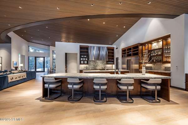 - 9 ft Plus Ceiling(s), Breakfast Bar, Double Vanity, Dual Flush Toilet(s), Elevator, Kitchen Island, Main Level Master Bedroom, Open Floorplan, Pantry, Ski Storage, Spa/Hot Tub, Steam Room/Shower, Vaulted Ceiling(s), Walk-In Closet(s), Washer Hookup, Wet Bar
