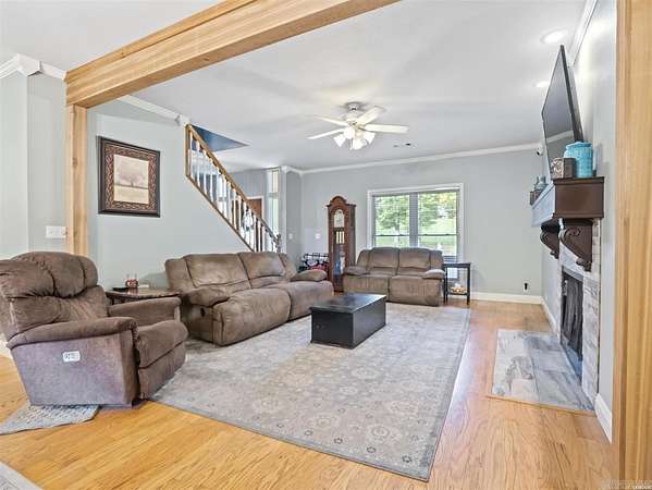 Welcome to Wildflower, a spacious family retreat tucked away in Hot Springs, Arkansas, on nearly 2 acres with a peaceful creek along the back of the property and a detached shop for hobbies, storage, or projects. Inside, you’ll find 4 bedrooms upstairs, a bonus room downstairs, and fresh new carpet, creating plenty of flexible space for family, guests, a home office, or a playroom. The kitchen features a large pantry and easy flow for everyday cooking and entertaining, while the primary suite offers double sinks, a convenient laundry chute, and a secure gun safe, adding both comfort and peace of mind. Gather together by the cozy wood-burning fireplace, or spread out with room to relax, work, and grow. Recent updates include a roof and two-zone HVAC system (approximately 6 years old), helping reduce big-ticket worries and making this home move-in ready. With city water, a well-maintained septic system, and a detached shop ideal for a workshop, storage, or toys, this property blends country living with modern convenience. Don’t miss your chance to call 217 Wildflower HOME. Properties with this much land, creek frontage, privacy, and a shop are rare in the Fountain Lake/HS area.