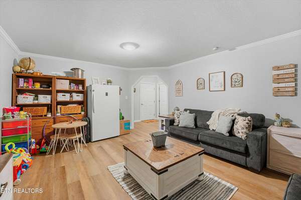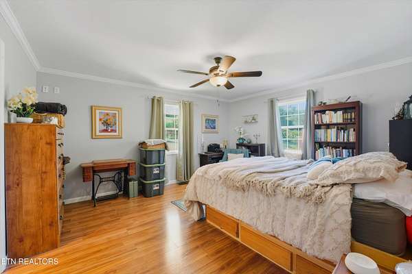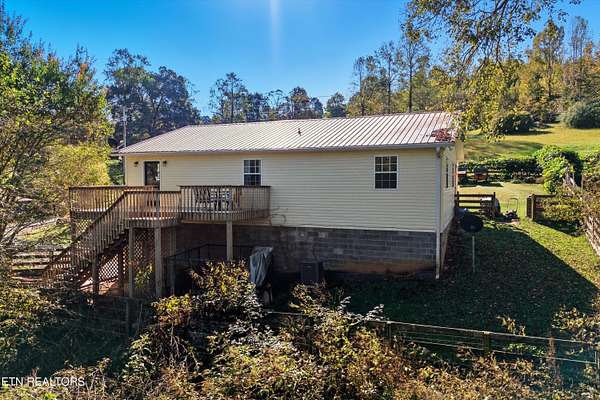 Spacious basement rancher sitting on 5 acres of land in the Heiskell community of Anderson County. Home is only minutes to Norris Freeway and the I-75 interstate plus only a short drive to Norris Lake. Home features covered front porch, back deck with beautiful views of your land. The main level of the home features an open spacious living rm, dining area & kitchen w/lots of natural light plus 3 BR's & 3 full baths. (owners suite BA, hall BA, & downstairs BA). The owners suite features large closet and private bath. Now make your way downstairs to a recent remodeled basement with large family room, full 3rd bath, laundry room and office/living space room. 1 car garage with storage space. Property is fenced with multiple fenced pasture areas. Property also includes a barn with w/stalls, tac room & covered carport area. There are 2 septic tanks on the property 1 up and 1 down.
