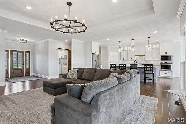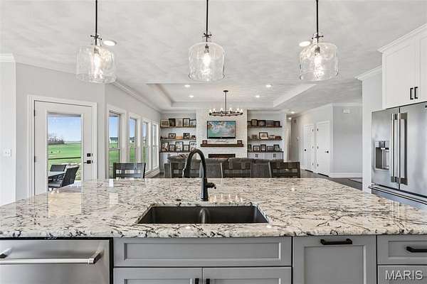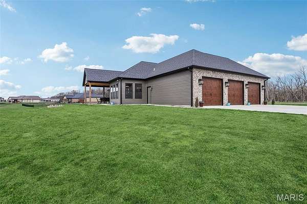 Some dreams do not get abandoned. They get passed on. A husband and wife sat down with a builder and described exactly what they wanted. The kitchen. The layout. The land. The pond out back where the boys could fish on a Tuesday afternoon just because. They got every bit of it, and now it is ready for whoever is next. And whoever is next is walking into something special. Built in 2024, this 2,310 sq ft home offers 3 bedrooms and 2.5 bathrooms on 3 acres at the end of a quiet cul-de-sac in Trenton, IL. Barely lived in and loaded with quality, this is not a flip or a spec build. It was designed by a family, for a family, and it shows in every detail. The open floor plan was built for hosting, a flowing kitchen and living space filled with natural light pouring in through purposefully placed windows that frame the pond view like a painting. Whether you are entertaining a crowd or just drinking your morning coffee watching the water, this home was designed to make that moment feel exactly right. The unfinished basement is a blank canvas, and it is already set up to be more than just storage. Two egress windows are already in place, making it possible to finish this lower level into a 5-bedroom, 3.5-bathroom home. A home theater, a game room, a gym, additional bedrooms, whatever your family needs, the space is ready and waiting for your vision. Out back, step onto your covered patio and take it all in. The pond is right there waiting. Morning fishing off the bank. Kayaking on a Saturday. Hosting on the patio while the kids play in the yard. The kind of outdoor space that teaches kids to slow down and reminds adults why they wanted land in the first place. And with three acres to work with, there is still plenty of room to add a detached garage or shed, put in that inground pool you have always talked about, and make this property everything you have ever pictured. Lot lines are estimated in the photos. No through traffic. No noise. Just space, stillness, and a home that has barely been broken in. This family built their dream. Now it is time for yours to begin. Sale is contingent upon sellers finding their next home. Call today for your private showing.