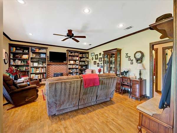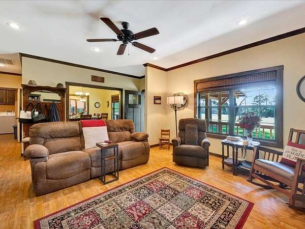 Welcome to peaceful country living at its finest! This pristine and very well-kept ranch-style home sits on 25 beautiful acres in a quiet rural setting, offering the perfect blend of comfort and functionality. Built in 2008, the home features approximately 1,800 square feet with 3 bedrooms, 2 full baths, and a convenient half bath. Inside, you'll find spacious rooms, large walk-in closets, crown molding throughout, and a generously sized laundry room designed for everyday ease. Step outside and enjoy a property that's ready for livestock, complete with a large hay barn, pond, and a 20x20 concrete workshop with electricity ideal for projects or storage. A new metal roof adds durability and peace of mind, while the wide-open space provides endless opportunities for recreation or expansion. Mineral rights convey, making this an even more valuable investment. If you're looking for a quiet, well-maintained property with room to roam, this one checks all the boxes for true country living.