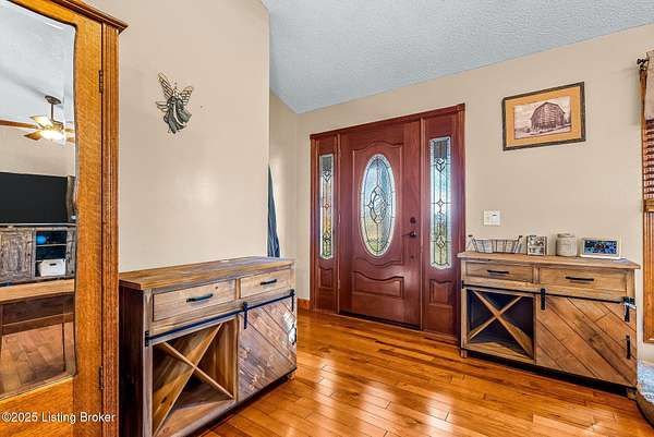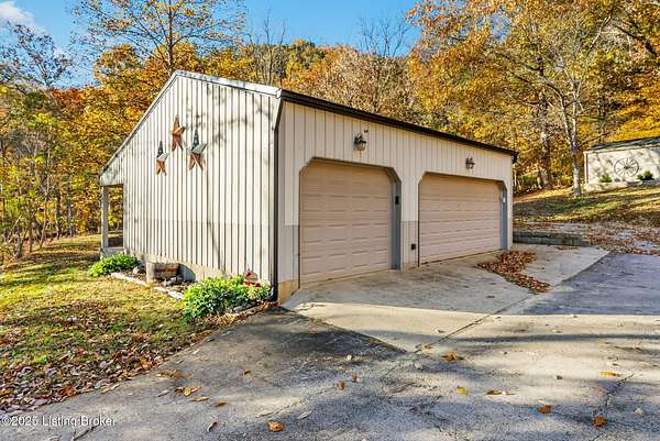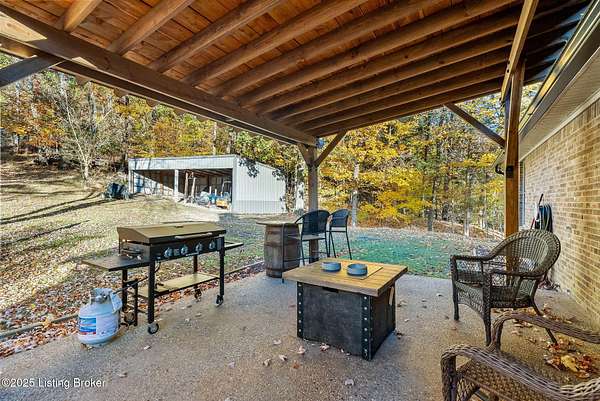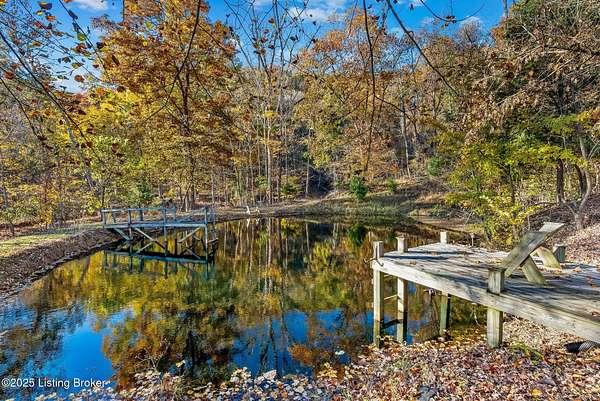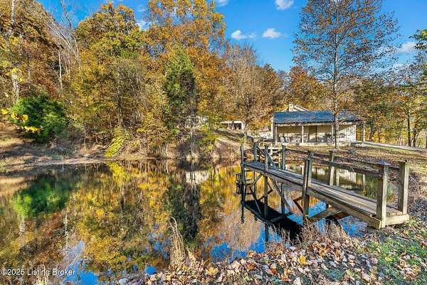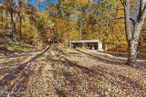 Find your perfect escape in the gorgeous Knobs region of Nelson County. This lovely brick ranch home sits in a peaceful serene setting with a view of open farmland to the front and woods to the rear. Convenient to Bardstown, Elizabethtown and Louisville, this home enjoys complete seclusion, tucked away from the road and surrounded by nature. The home features an open concept great room with a vaulted ceiling and fireplace (with stove insert), a country kitchen with a dining area, custom hickory cabinets, and an island and modern appliances, Hickory hardwood floors on main level (except kitchen, baths & ldry). Primary bedroom is an en suite with double tray ceiling. This well-maintained home has French doors leading to a covered deck that overlooks the wooded acreage with its abundant wildlife (deer, turkey, birds & squirrels). The basement features a large garage, finished bonus room, lots of storage and a safe room with potential additional bedroom or an en suite. Det 3 car garage, and a spacious shed with electricity with another shed for lawn equipment and firewood. One yr HSA Home Warranty. Ready for new owners.