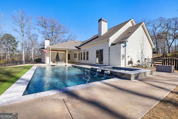 Your search is over! This property has all you could want and more. It is tucked back of the street with a great drive leading to the home. It is in move-in ready shape and recently updated throughout. This home is great for entertaining too. The family room is open to a true chef's kitchen with a large island, commercial grade oven/cook-top, pot filler and prep sink. There's a spacious walk in pantry with custom wood shelving right off the kitchen. The family room has a great view to the patio with fireplace, pool and putting green. The primary suite is on one side of the home separate from the secondary bedrooms. The primary bath offers seperate double vanities, soaking tub, tiled walk in shower and access to the mud/laundry room. The secondary bedrooms on the main each have a bath and the rear bedroom has a sliding door to the pool area. Upstairs you will find a very large 4th bedroom (bonus, office or media room) with another full bath. There is walk in access to the 3 hvac systems plus additional attic storage. Once outside you will be sure to enjoy the 16x34 heated pool with a tanning ledge and hot tub, a putting green and covered patio with a fireplace. This home sits on just over 8 acres that also has a pond. This home features high end finishes with hardwood floors on the main level (tile in the baths and mudroom), custom closets with wood shelving, a really large walk in storage room on the main level, foam insulation in the attic, 3 car garage with epoxy coated floors, 2 water heaters. When we say it has it all we really mean it. Want to swim? It has a pool ~ Want to fish? It has a pond ~Want to golf?It has a putting green~ Want privacy? It has that too! Don't miss out on this great opportunity!