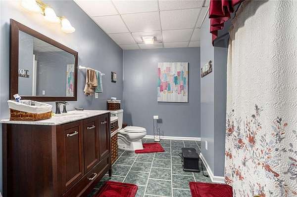 The fully finished basement adds three generously sized bedrooms with LVP flooring, including one with a reinforced safe room (rebar walls and built-in safe) ideal for gun storage or storm protection, and another with its own wood-burning stove.