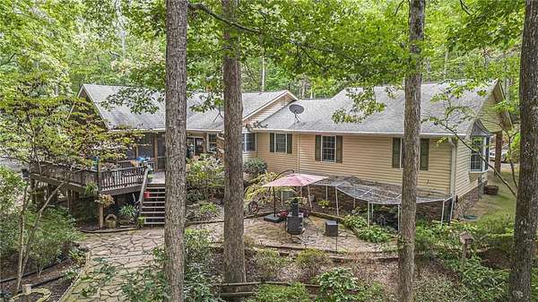 An outdoor lover's paradise! Nestled on over 12 private wooded acres with a creek, this property offers endless opportunities for hunting, riding ATVs, gardening, and enjoying nature. Already set up with deer stands, shooting targets, garden, chicken coop, invisible fencing (with 2 collars), storage shed/workshop, and a self-watering greenhouse. Owner has invested heavily in upgrades including a concrete retaining wall, extensive landscaping, a beautiful stone-paved patio and walkway, and a wraparound deck to take in the views.