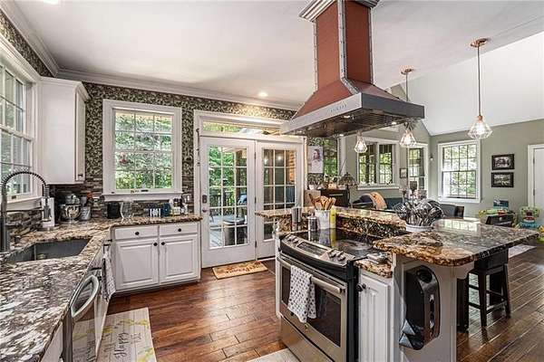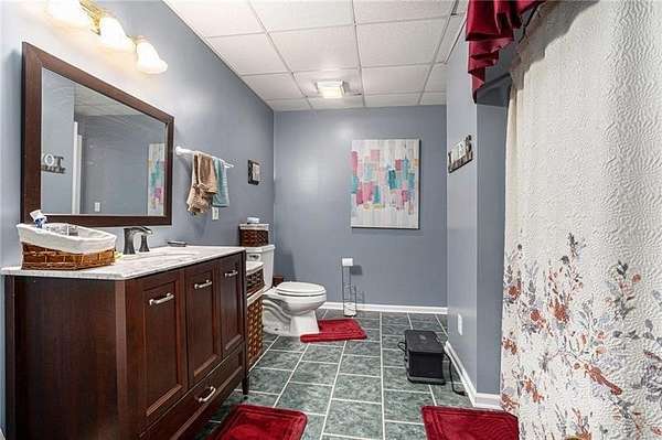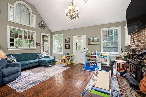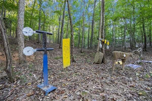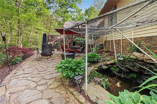 If you've been dreaming of space, privacy, and a true connection to the outdoors, this property is something special. Set on more than 12 wooded acres with a flowing creek, this home feels like your own private retreat-whether you love hunting, riding ATVs, gardening, or simply soaking in the quiet of nature. The land is already thoughtfully set up for outdoor living, with deer stands, shooting targets, a garden, chicken coop, self-watering greenhouse, invisible fencing with two collars, and a storage shed/workshop, so you can start enjoying it from day one. The owners have poured care into both the land and the home, adding a concrete retaining wall, extensive landscaping, a beautiful stone-paved patio and walkway, and a wraparound deck that invites you to slow down and take in the views. Inside, the home is warm, welcoming, and beautifully updated. The remodeled kitchen is the heart of the home, featuring white-stained cabinets, granite countertops, a farmhouse sink, stainless steel appliances, and a double oven. It opens easily to the breakfast area and a dramatic family room with soaring ceilings, a wood-burning fireplace, and Andersen lifetime windows and doors that fill the space with natural light. The primary suite on the main level offers a peaceful escape with vaulted ceilings, four closets-including an impressively large walk-in-and a spacious bathroom with extended dual vanities and tile floors. A large den adds another inviting gathering space, complete with built-in bookshelves, a dining area, wine fridge, beverage cooler, surround sound, and a home theater setup with a pull-down projector screen over a cozy gas log fireplace. Rich 3/4-inch hickory hardwood floors run throughout the main level, adding warmth and character. Downstairs, the fully finished basement provides even more flexibility with three generously sized bedrooms finished with durable LVP flooring. One includes a reinforced safe room with rebar walls and a built-in safe, ideal for secure storage or storm protection, while another features its own wood-burning stove for added comfort. This is more than just a home-it's a lifestyle. With unmatched privacy, thoughtful upgrades, and incredible indoor and outdoor spaces, this rare property offers the freedom to live, entertain, and explore in a way few homes can.