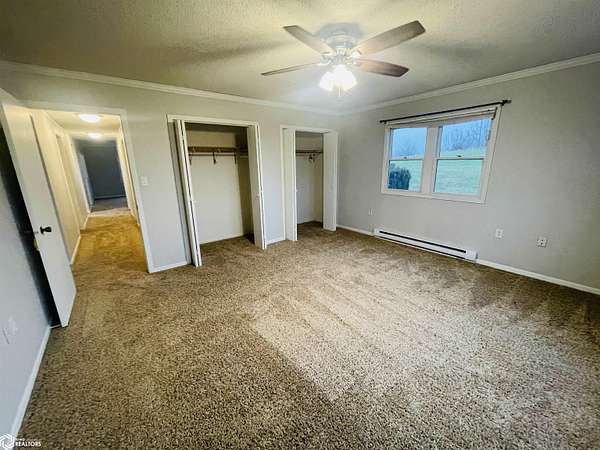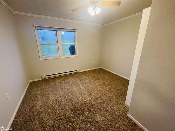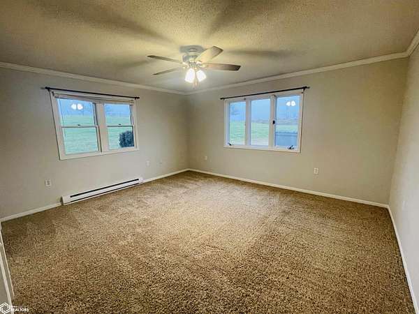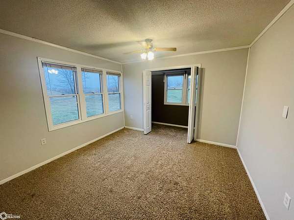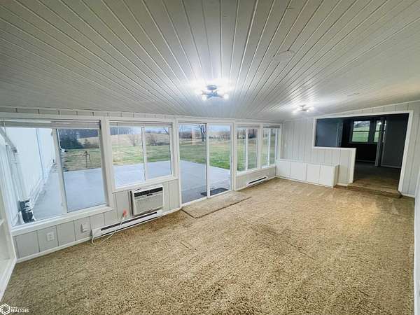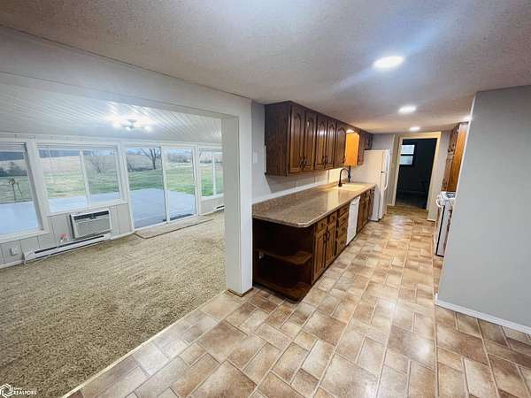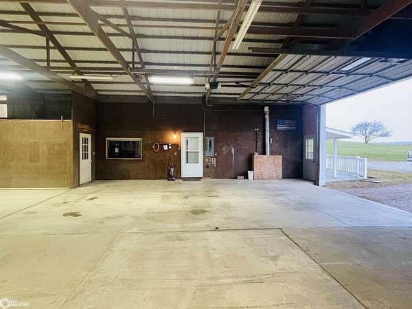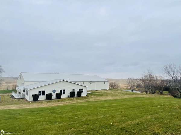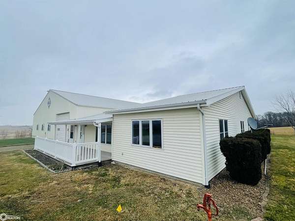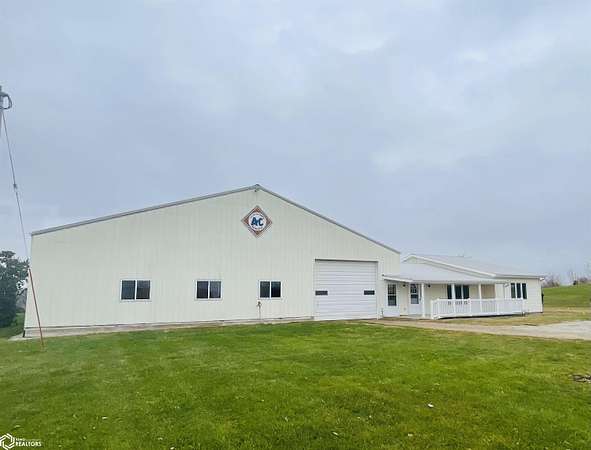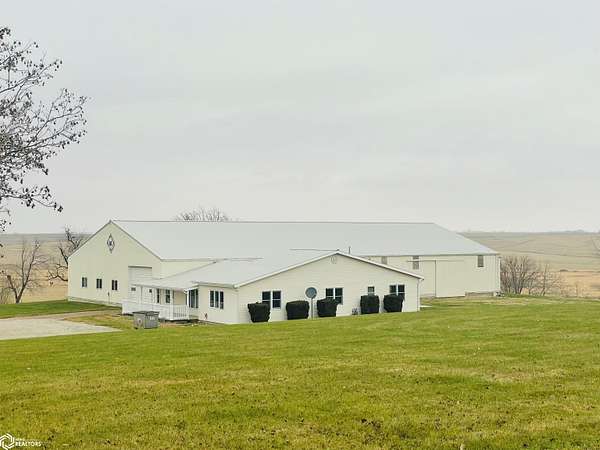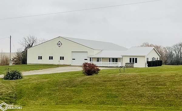 Call it a Barndominium. Call it a Shouse. Call it, Home!! This is such a great piece of property boasting a cozy 1,680 sq. foot living space attached to a 120ft by 60ft frame building in the serene setting of almost 14 acres. You will enjoy accessing this quiet property from hard surface road. The house is super clean and move in ready. 2 bedrooms and a large bath. Spacious living room and dining area, oak kitchen cabinets with soft close drawers. (appliance remain with the property) A large four season room to the East is perfect for coffee time in the morning, play room, and that large family gathering. The sky is the limit with the machine shed next door. Mechanics shop, pickle ball, basketball court, livestock, machinery or all of the above! Make use of the added building inside a building for your office, quilting, work outs, whatever you make of it. Enjoy the pond with an evening campfire with friends and family. The kids will love it! Don't miss this opportunity for that extraordinary acreage you've always wanted! Bonus: Rural Water and Montezuma Natural Gas. Excuse the dirt work...you're getting a brand new septic system!! Call for a showing!
