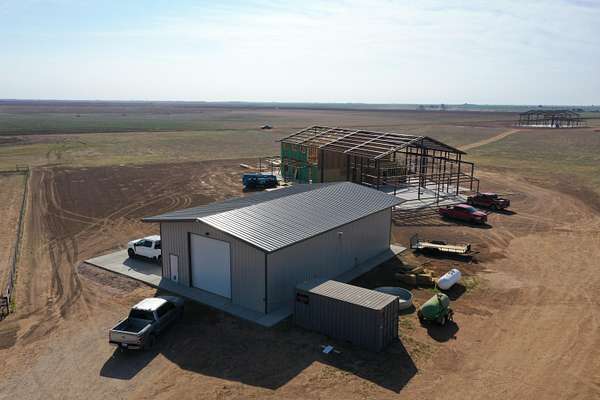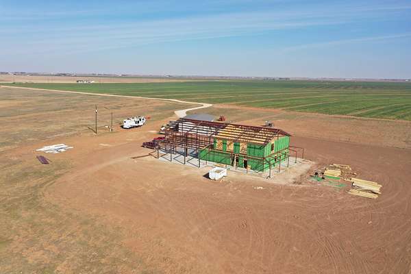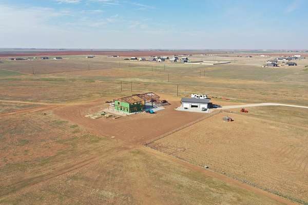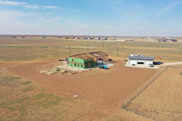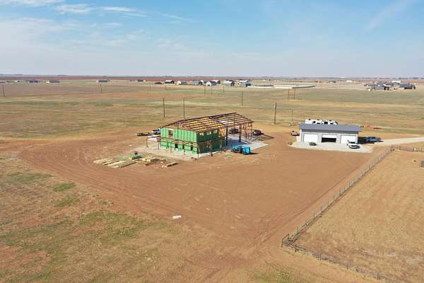 Luxury 6,600 sqft Barndominium on 20 Acres! This stunning 6,600 sqft barndominium sits on 20 acres of land right within the Lubbock city limits. The main living space of 4,057 sqft includes four bedrooms, four full bathrooms, one half bath, a bonus room, an office, a massive walk-in butler's pantry, and a 532 sqft loft. The living area features 10-foot ceilings on the first floor and soaring 28-foot ceilings in the living room, creating an open and airy feel. Enjoy nearly 360-degree views with 3,121 sqft of wraparound covered porch space. The property also includes a large shop area with five overhead doors, including a pair of 10ft and 16ft pull-through doors, and a 250 sqft storage/utility room. A separate 2,100 sqft "mother-in-law" barndo with 640 sqft of living space adds extra versatility with a bedroom, bathroom, living room, and full kitchen. The land features a 1.5-acre fenced livestock pen and a pond area at the northeast corner. With no property restrictions, the possibilities are endless. Currently under construction and expected to be completed by August, this property offers the buyer the opportunity to personalize finishes like paint and flooring. Don't miss out on this unique, luxury barndominium!