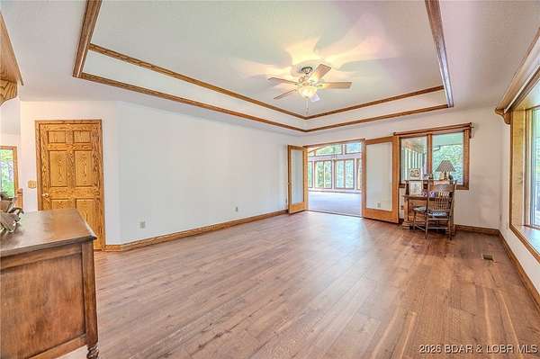 - Built In Features, Ceiling Fans, Custom Cabinets, Fireplace, Walk In Shower