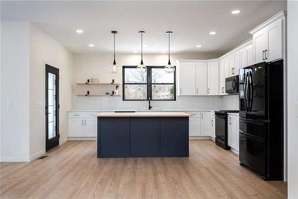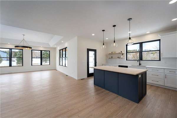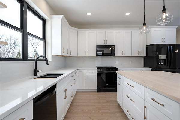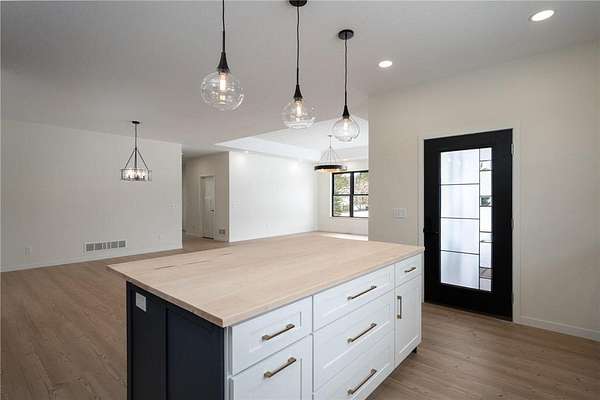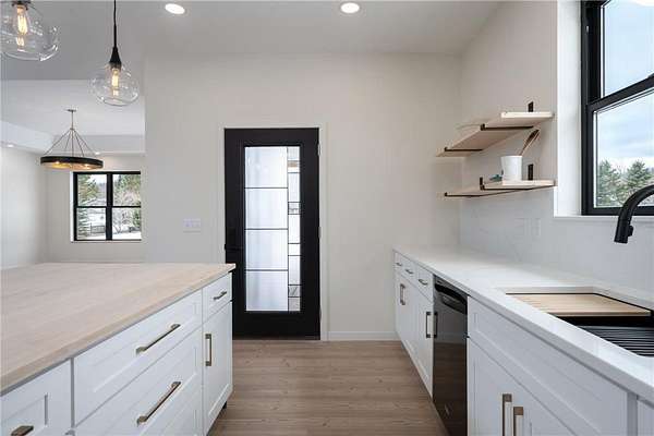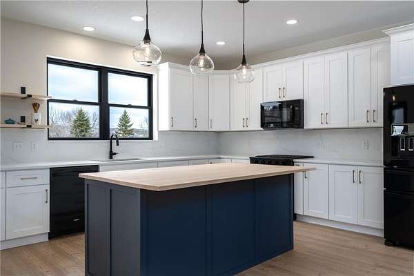 The open-concept main living area showcases quartz countertops, a butcher block island, and beautiful cabinetry, while the butler's pantry with abundant storage makes entertaining and organization effortless. Large black Andersen windows fill the home with natural light and add a modern, high-end touch throughout.