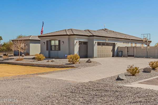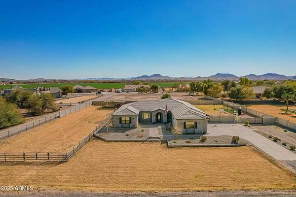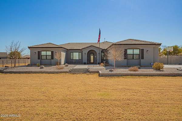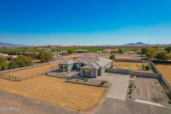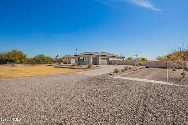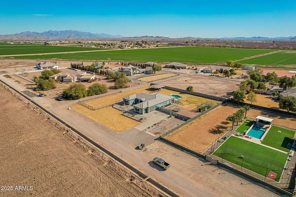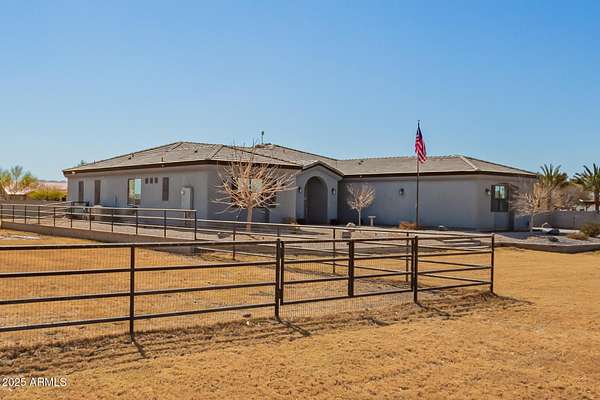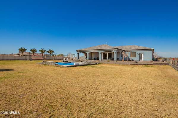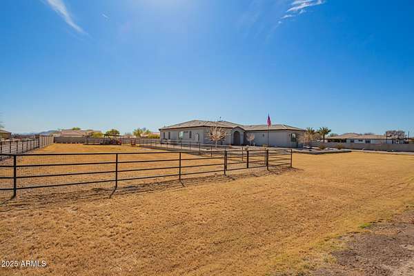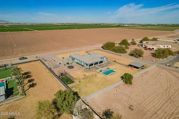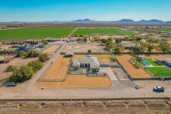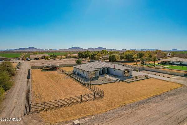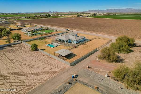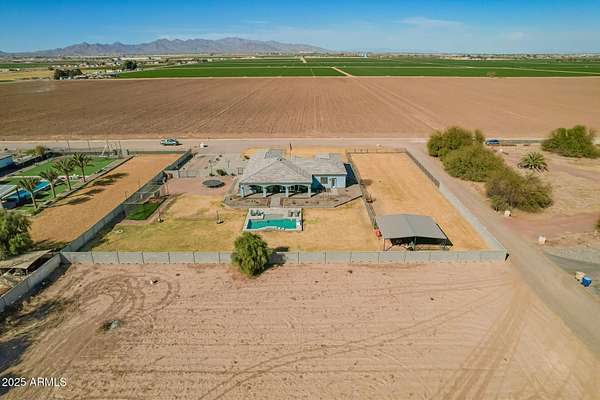 Come enjoy peace and tranquility in this amazing 3146 sqft 5 bed 3.5 bath home that sits on 1.5 irrigated acres!! and NO HOA!! Perfectly situated on a country rd just outside of the city lights and noise. The backyard is a paradise, featuring a pool, coral with shade structure, batting cage, desert landscaping and a large extended covered patio. Plenty of room to park your RV or other toys. Inside features 10ft ceilings, a gourmet kitchen with large island, solid wood custom cabinetry, 2 Master suites and good size secondary bedrooms. The layout is very functional. The 3 car garage has plenty of space and epoxy floors. Both AC units are less than 2 years old. Come take a look at this piece of paradise!! You wont be disappointed.