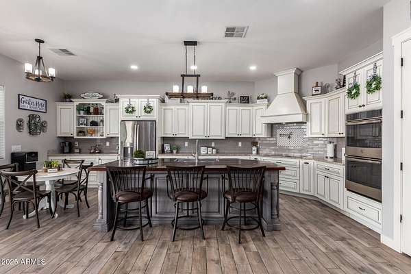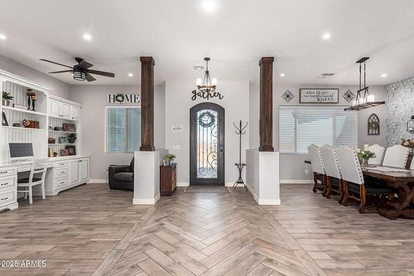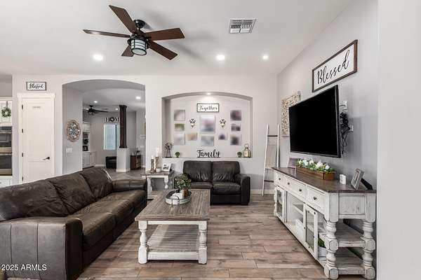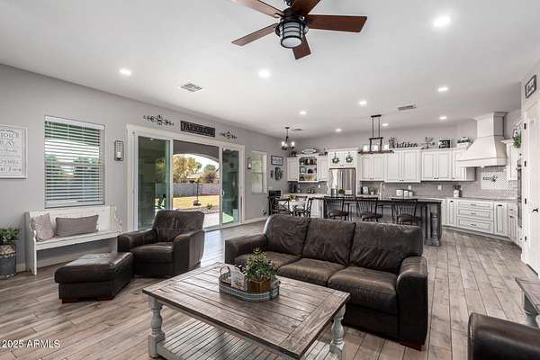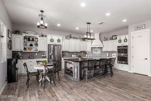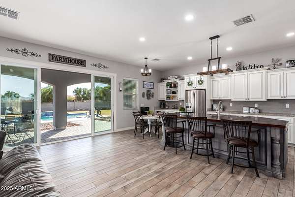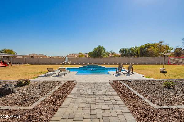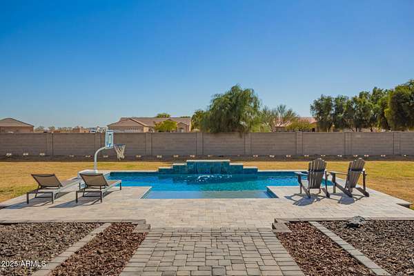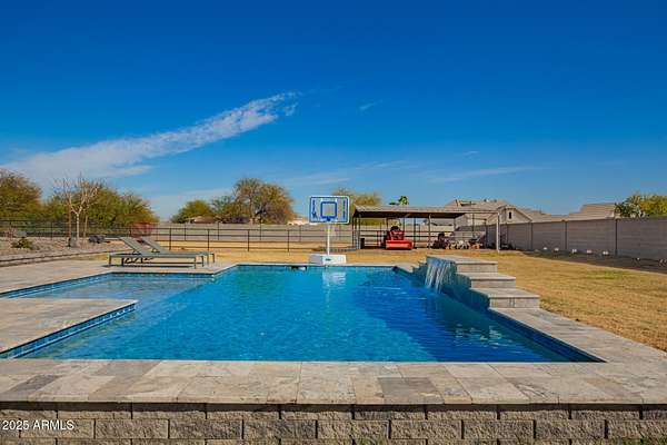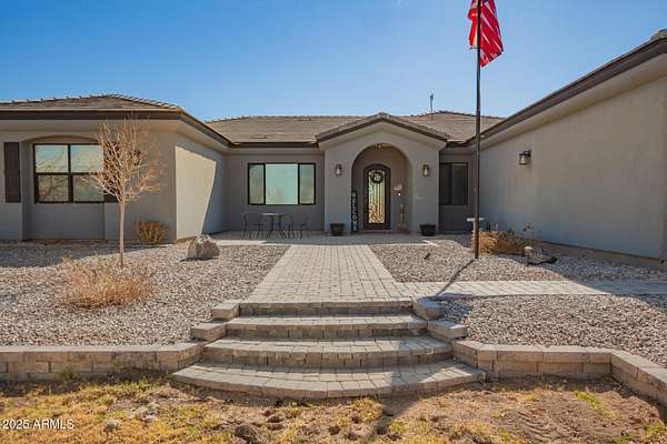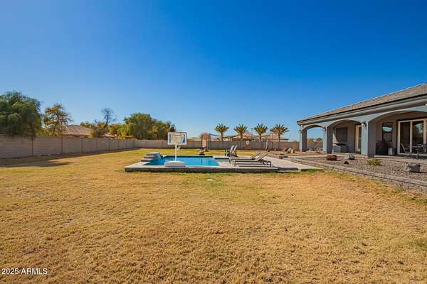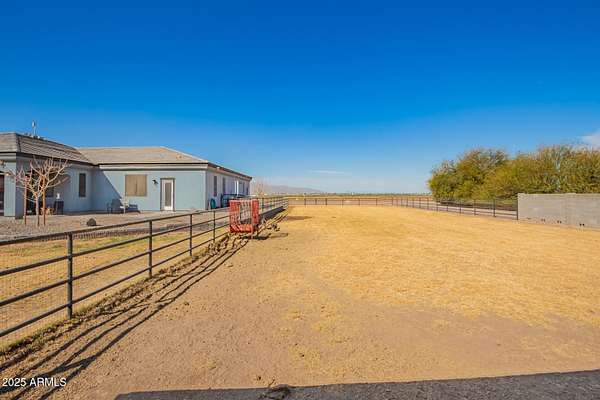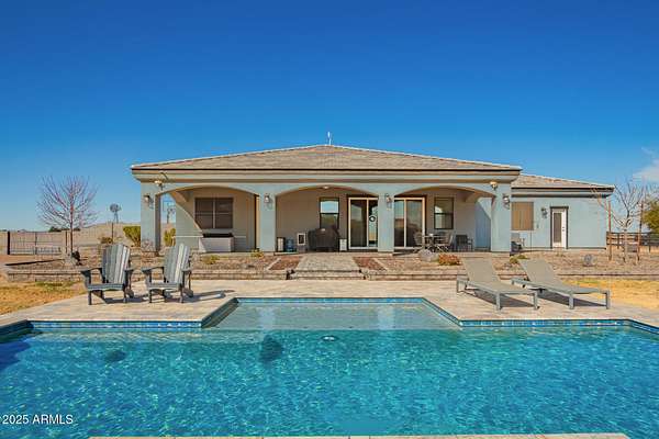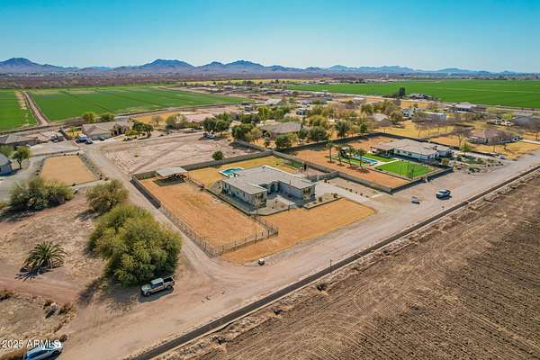 Come enjoy peace and tranquility in this amazing 3146 sqft 5 bed 3.5 bath home that sits on 1.5 irrigated acres!! and NO HOA!! Perfectly situated on a country rd just outside of the city lights and noise. The backyard is a paradise, featuring a pool, coral with shade structure, batting cage, desert landscaping and a large extended covered patio. Plenty of room to park your RV or other toys. Inside features 10ft ceilings, a gourmet kitchen with large island, solid wood custom cabinetry, 2 Master suites and good size secondary bedrooms. The layout is very functional. The 3 car garage has plenty of space and epoxy floors. Both AC units are less than 2 years old. Come take a look at this piece of paradise!! You wont be disappointed.