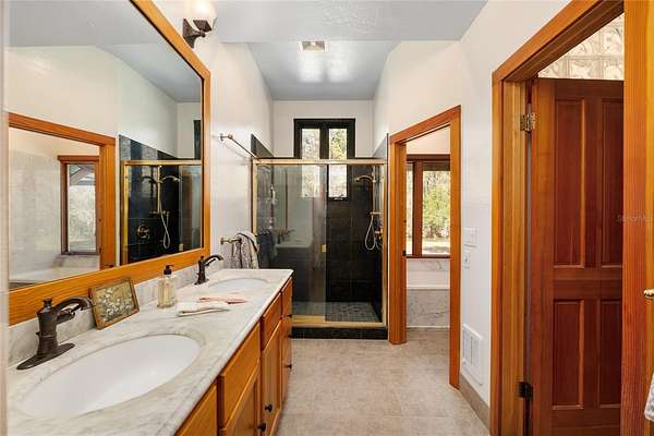 The setting of this remarkable property feels like a scene from "A Land Remembered." Custom built on 20 acres, this stunning Craftsman-style residence was thoughtfully constructed by a professional contractor for his personal residence. The driveway entrance welcomes you beneath a sweeping canopy of heritage oaks that guide you to the home, setting the tone for the natural beauty that surrounds it.