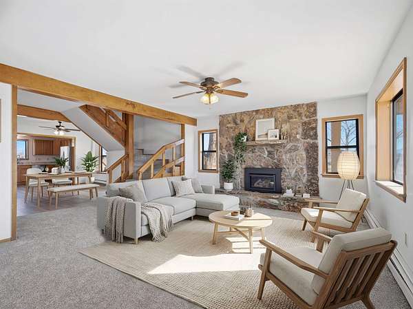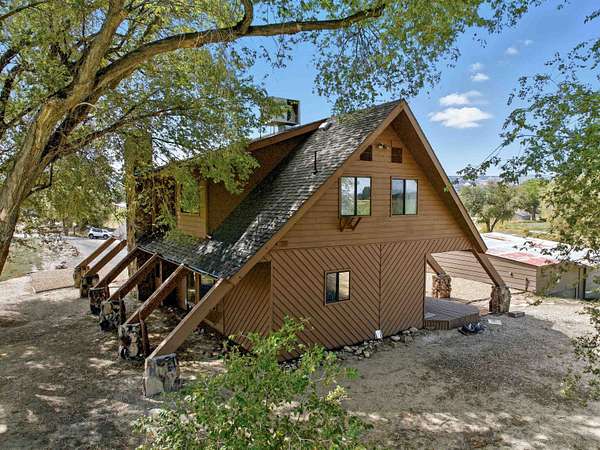 Set on 13.01 acres of pristine Colorado landscape, this beautifully updated A-frame retreat captures sweeping 360-degree views and an unmistakable sense of serenity. The main home blends rustic charm with modern comfort, offering two spacious bedrooms, dual living areas, and two newly installed gas fireplaces that create a warm, welcoming atmosphere. Fresh flooring, paint, updated appliances, and a newly stained exterior make the home feel crisp and move-in ready. A private 1-bed/1-bath ADU above the two-car garage adds versatility-ideal for guests, extended family, or rental income. The property also features a generous 24' x 30' detached garage perfect for storage, hobbies, or a workshop. With the ability to split the land for an additional buildable lot, this property offers both opportunity and tranquility. Enjoy the peaceful country feel while staying conveniently close to town.