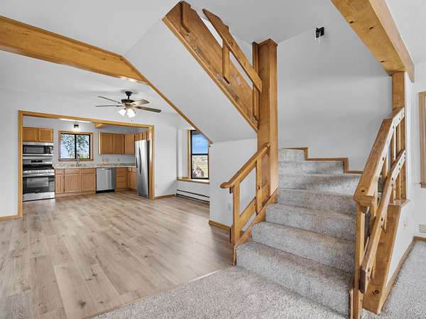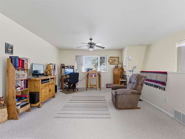 - Ceiling Fans, Granite Counters, Kitchen Dining Combo, Upper Level Primary, Walk In Shower
