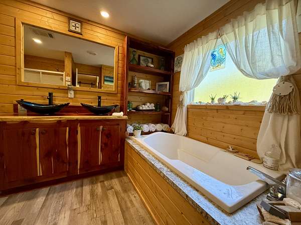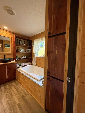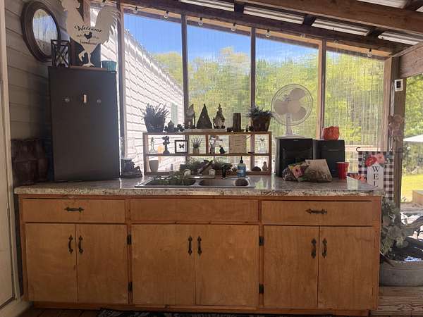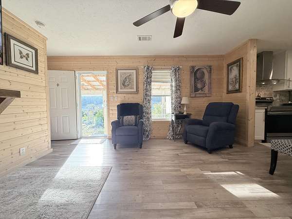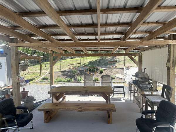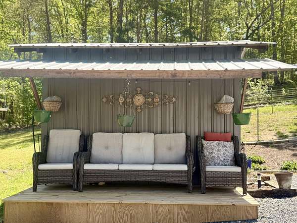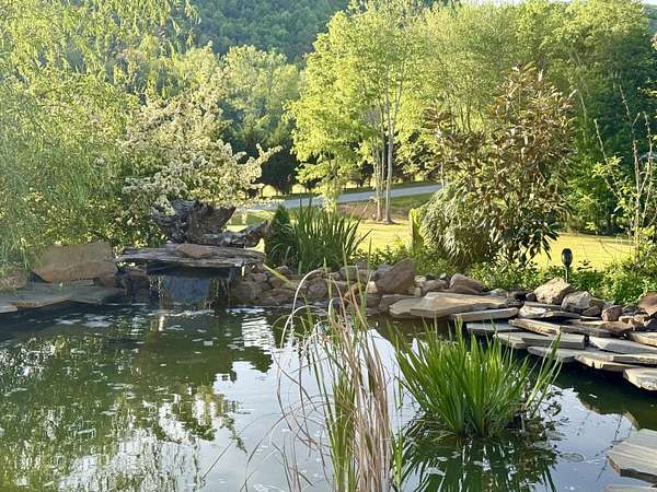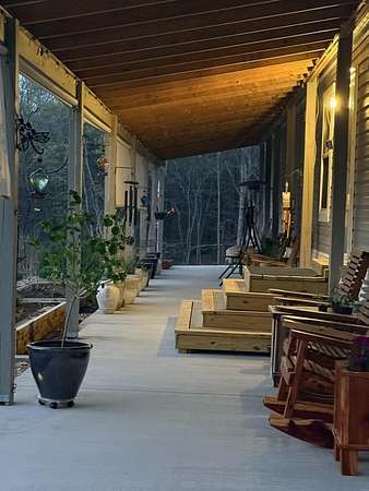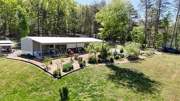 Tucked away in the rolling hills of North Georgia, this one-of-a-kind property offers the perfect blend of peaceful country living and elevated design. Situated on approximately 9.91 acres, this rare find delivers breathtaking scenic views, privacy, and thoughtfully curated outdoor spaces that truly set it apart. This beautifully maintained 1,216 sq ft home lives like a luxury tiny retreat, featuring high-end finishes throughout. The kitchen is a standout with granite countertops, custom cabinetry, a center island with sink, and all stainless steel appliances including refrigerator and dishwasher. New LVP flooring runs throughout the home, complemented by warm natural pine tongue and groove walls that create a cozy yet upscale feel. The living room features an electric fireplace, perfectly paired with the cedar wall updates to create a warm and inviting focal point. The spacious primary suite offers a spa-like experience with a custom blue glass double vanity, soaking tub, separate shower, and both a walk-in closet and additional double closets for ample storage. Outdoor living is where this property truly shines. Enjoy an impressive 900 sq ft of covered porch space, including a 760 sq ft front porch with concrete flooring designed for relaxing and taking in the stunning views. Custom shades allow you to control sunlight and comfort, while whimsical lighting adds the perfect ambiance. The covered back porch is equally functional, featuring a working sink ideal for gardening or outdoor entertaining, and is connected to a 336 sq ft carport for added convenience and covered access. The nearly 10-acre property includes approximately 3 acres cleared, with the remainder offering natural beauty and privacy. Thoughtfully designed landscaping includes multiple raised garden beds for flowers, herbs, and vegetables, two charming arbors, a koi pond, and a bubbling water feature, creating your own private oasis. Additional features include a fenced dog run, two storage buildings and an additional shed, RV parking with hookup on site, underground utilities, and meticulously maintained grounds. Major systems have been well maintained, with the roof, air conditioning system, and hot water heater all approximately seven years old. Located just minutes from the Chattahoochee National Forest, Johns Mountain, and the scenic Chattooga River, this property is surrounded by endless opportunities for outdoor adventure. Enjoy hiking, biking, kayaking, swimming, and exploring, all while being conveniently close to Calhoun and Dalton for dining, shopping, and everyday conveniences. This property is more than a home. It is a lifestyle. Whether you are looking for a private retreat, mini homestead, or a unique getaway, this North Georgia gem offers endless possibilities.
