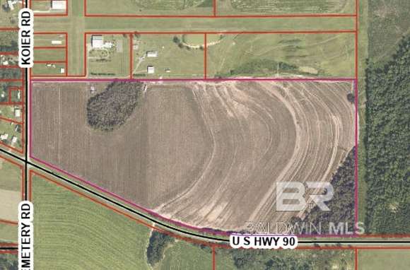 Heading east on HWY 90 from Robertsdale area, this parcel is located on your left at the corner of HWY 90 and Koier Rd.