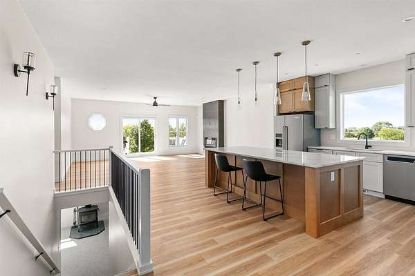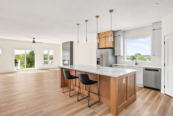 Discover 17.9 Acres of Updated Country Living. Welcome to your dream acreage! This beautifully updated home sits on 17.9 acres of rolling countryside with a private pond, woods, and multiple outbuildings. Inside, the main level has been completely renovated with a brand-new kitchen featuring quartz countertops, sleek cabinetry, stainless appliances, and an open floor plan filled with natural light. Oversized windows frame sweeping views of the pond, open fields, and wooded backdrop. The main floor also offers a versatile office/bedroom plus a spacious primary suite with a fully updated en-suite bath. The finished lower level is designed for comfort and entertaining, complete with a wood-burning fireplace, wet bar, two large bedrooms, a full bath, and abundant storage. Outdoors, the property truly shines. The 17.9 acres include a breathtaking stocked pond, mature trees, and four versatile outbuildings. From the massive warehouse to the two-car-sized garage, chicken coop, and woodshed, there's room for hobbies, animals, or business ventures.This is more than a home-it's a lifestyle. Whether you're seeking peace and privacy, space to grow, or the perfect setup for country living, this Winterset acreage delivers it all.