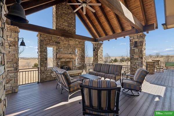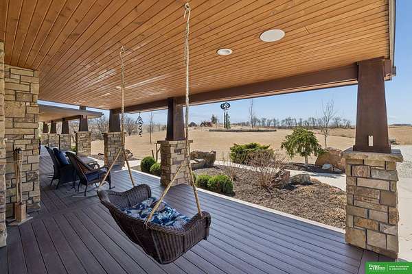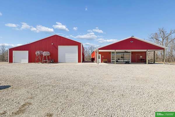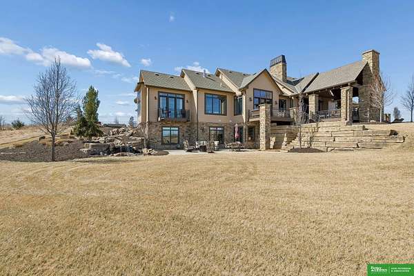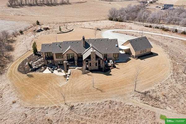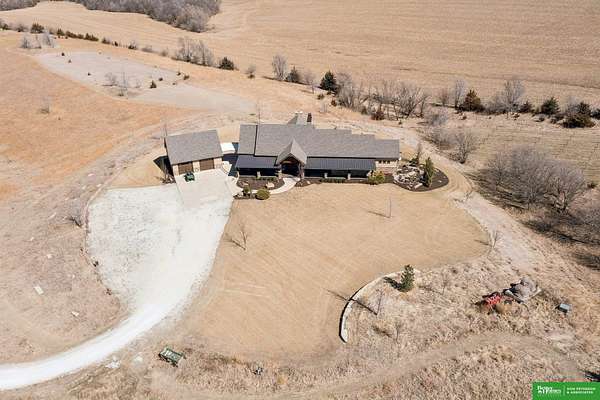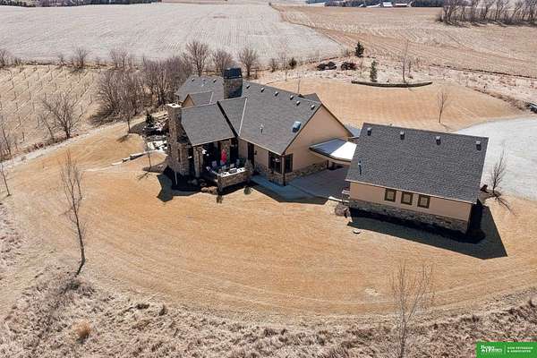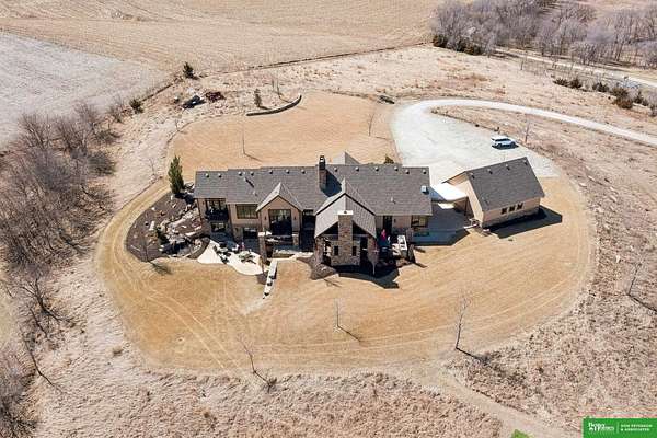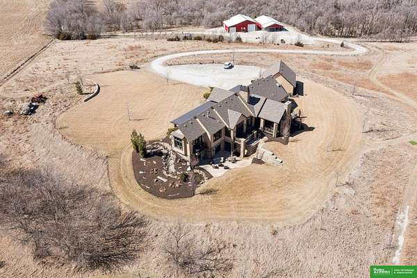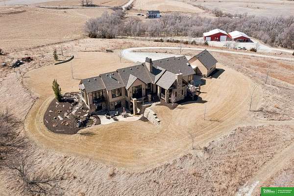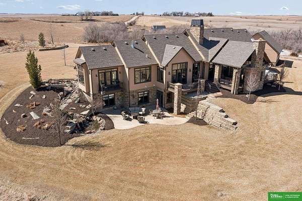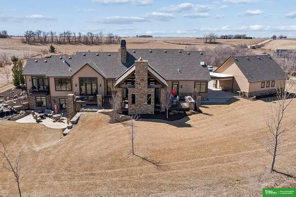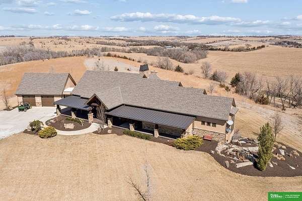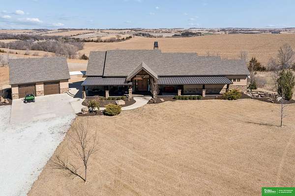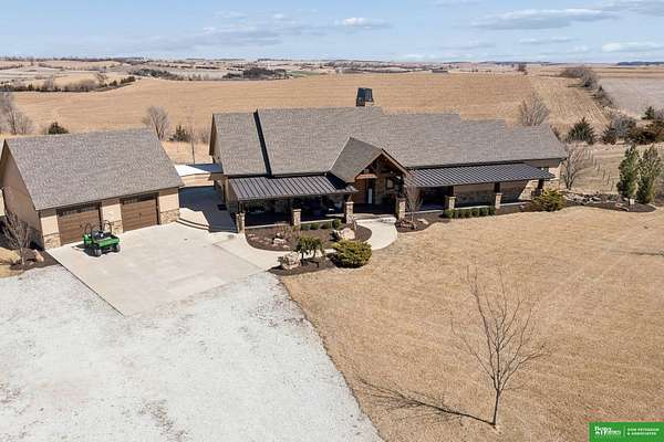 Jessi Hoover, M: 402-660-6276, jessi@donpeterson.com, https://www.donpeterson.com - Once-in-a-lifetime property! Stunning 3 bed/5 bath home loaded with amenities. Chef’s kitchen features a 7-ft sink, canning stove, and large baking range, plus a second full kitchen with cabinet fridge/freezer and wine fridge. Open living area leads to a covered deck with outdoor kitchen. Main floor offers 2 bedrooms with private baths, Jack & Jill shower, 22-ft closet, cozy sitting room with wet bar, laundry, dining, and additional bath. Elevator to walkout basement with family/media room, kitchen, powder room, and 55 sq ft wine cellar (58°, 75 bottles, glass doors). Includes craft/office space, Murphy bed area, and 3rd bedroom with full bath and soaking tub. Acreage features vineyard, garden, beehives, hunting, wildlife views, driving range, bunkhouse with RV hookup, and large RV outbuilding.
