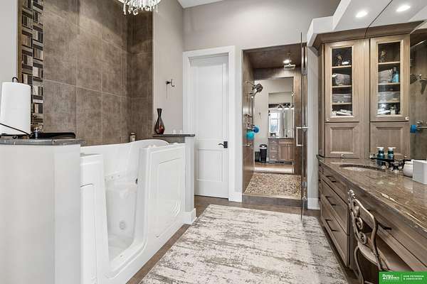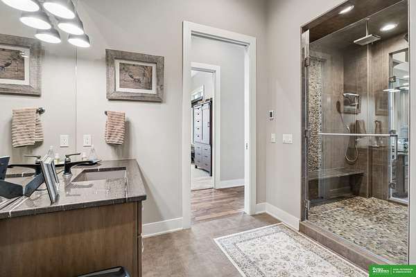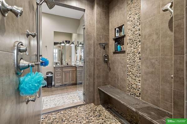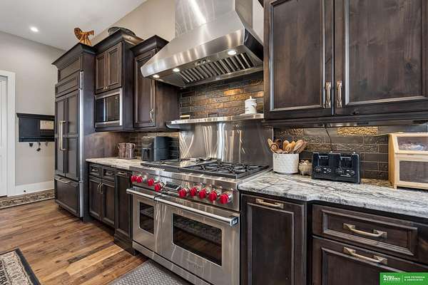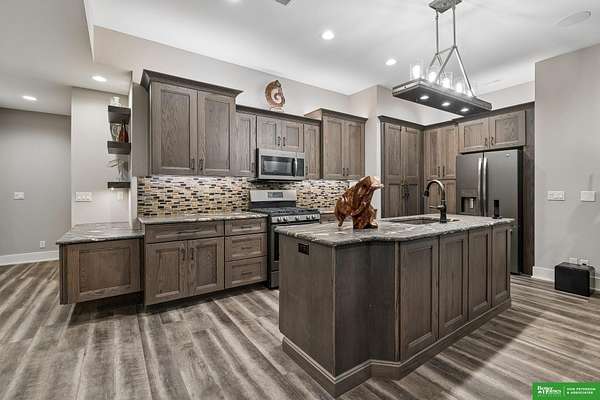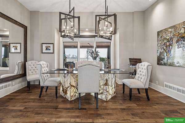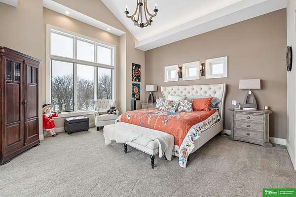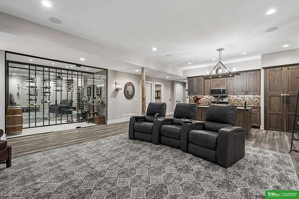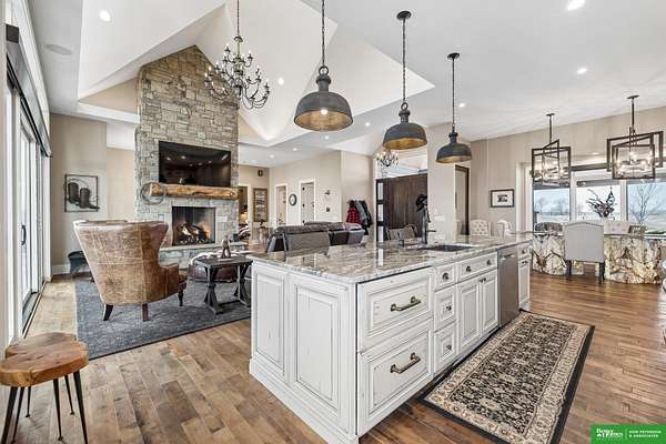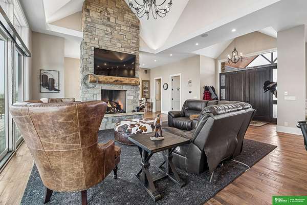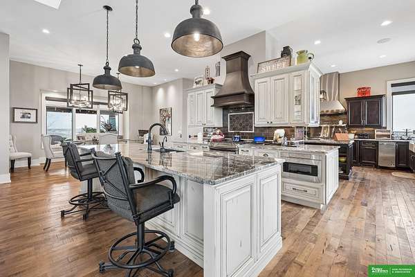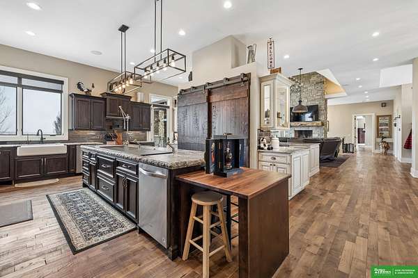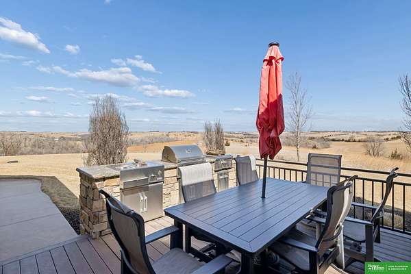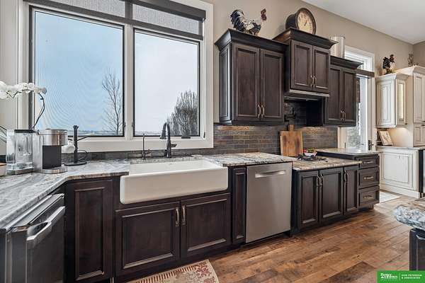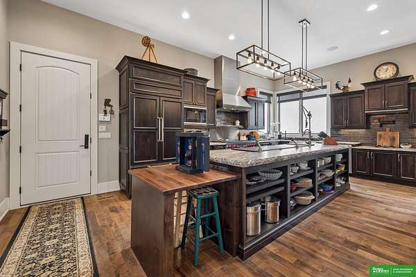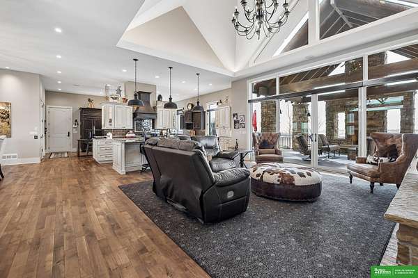 Jessi Hoover, M: 402-660-6276, jessi@donpeterson.com, https://www.donpeterson.com - Once-in-a-lifetime property! Stunning 3 bed/5 bath home loaded with amenities. Chef’s kitchen features a 7-ft sink, canning stove, and large baking range, plus a second full kitchen with cabinet fridge/freezer and wine fridge. Open living area leads to a covered deck with outdoor kitchen. Main floor offers 2 bedrooms with private baths, Jack & Jill shower, 22-ft closet, cozy sitting room with wet bar, laundry, dining, and additional bath. Elevator to walkout basement with family/media room, kitchen, powder room, and 55 sq ft wine cellar (58°, 75 bottles, glass doors). Includes craft/office space, Murphy bed area, and 3rd bedroom with full bath and soaking tub. Acreage features vineyard, garden, beehives, hunting, wildlife views, driving range, bunkhouse with RV hookup, and large RV outbuilding.