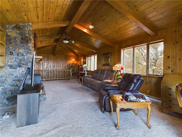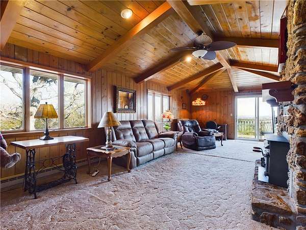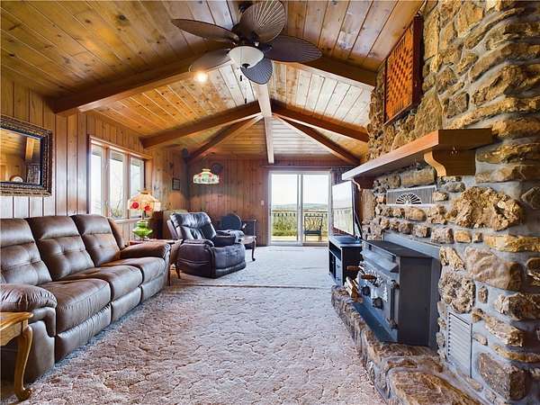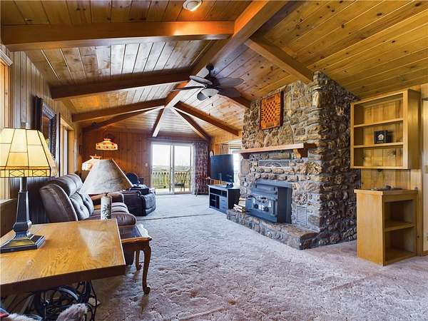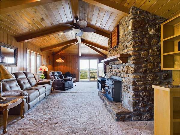 Nestled in a peaceful country setting, this home offers the perfect blend of comfort and country living, all situated on just over 13 acres of land. Enjoy breathtaking views from the property! Inside, you'll find a spacious layout featuring a beautiful wood ceiling and walls that adds warmth and character. The large kitchen is ideal for preparing meals and entertaining. With 4 bedrooms and 3 baths, there's plenty of room for family and guests. The versatile basement provides endless possibilities for additional living space or a recreation area. A large sunroom allows you to relax and enjoy the outdoors from the comfort of your home, no matter the weather. A 2-car garage ensures convenience, while the horse barn is perfect for animal lovers or hobby farmers. Whether you're seeking a peaceful retreat or a property with room to grow, this one has it all!