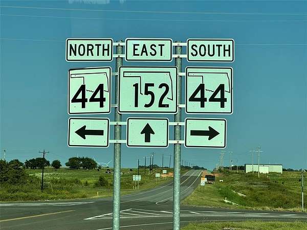 Off of 152 going east it's 2 miles east out of Dill City property sits on the south side of Highway. Or from 152 junction go east 4 miles