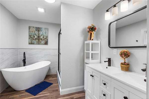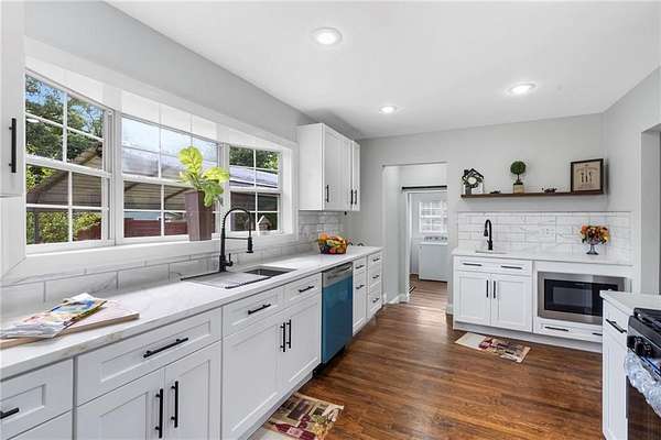 Est $2,356/moPriced below appraised value with immediate opportunity for value. Move-in ready with real hardwood floors, updated light fixtures, roof replaced in 2023, and brand-new HVAC. Renovated kitchen features soft-close cabinets, quartz countertops, new appliances, and coffee bar/prep area with secondary sink. Flexible layout offers two en-suites, main living plus second living room/sunroom, formal dining, three full baths, and oversized laundry/mudroom with sink. Covered front porch and great back deck. Situated on 2.16 acres between Rogers and Eureka Springs near lake areas. May suit primary, second home, or short-term rental use.