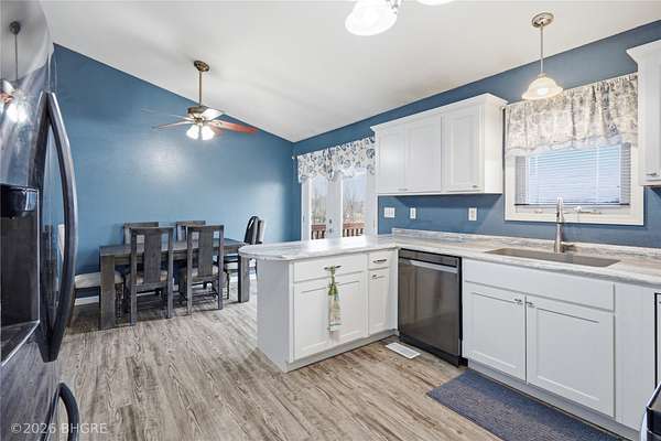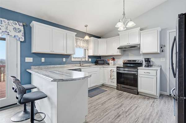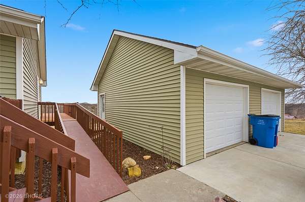 Welcome to this beautifully remodeled private ranch nestled on just under 3 acres in Warren County. This 3-bedroom, 2-bath home has been thoughtfully updated to provide both comfort and convenience, featuring quality construction and handicap accessibility designed to accommodate a variety of needs. The main level includes a large primary suite with an ensuite bathroom and adjoining access to the second bedroom, offering a flexible layout ideal for families, guests, or a home office. A convenient half bath is also located on the main level for guests. A vaulted ceiling in the living room creates an open and airy feel that flows seamlessly into the dining area just off the spacious kitchen-perfect for everyday living or entertaining. Step outside to the huge back patio overlooking the scenic property, complete with fruit trees and a pond setup that adds to the peaceful country setting. The finished walkout basement offers additional living space ideal for entertaining, along with plenty of storage, an additional bedroom, and a full bathroom. A detached two-car garage provides extra functionality and convenience. Enjoy privacy, space, and modern updates all in one beautiful property. 13 Mo HWA Platinum Home Warranty included!