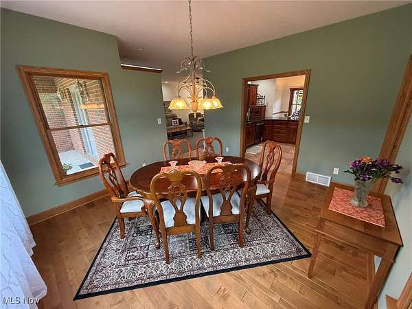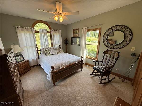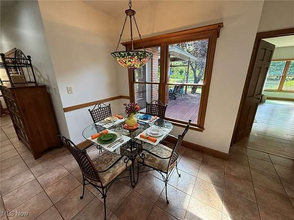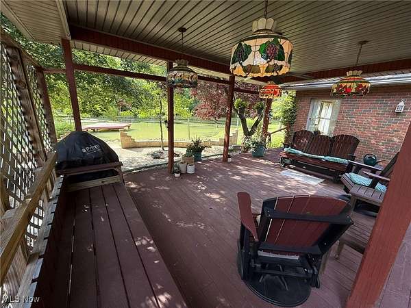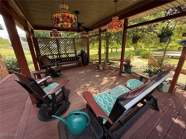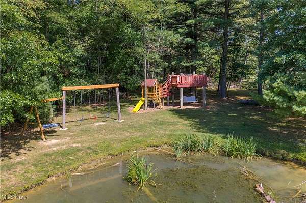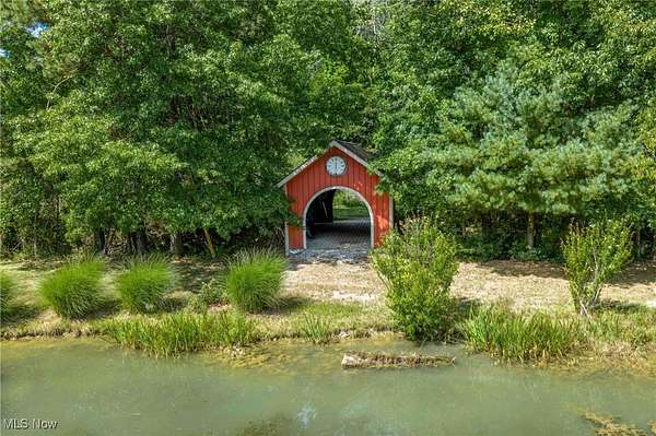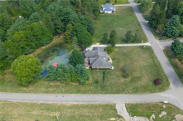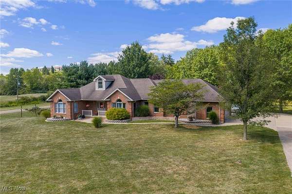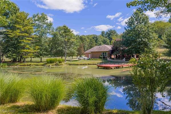 Quality built all brick ranch on 2.79+/- acres with scenic quarter acre pond. Open floor plan with 9' ceilings and raised panel wood doors throughout. Gas fireplace in the living room. Custom Meese cherry kitchen boasts tile backsplash, granite counters and breakfast bar. Brand new stainless steel kitchen appliances included. Maple hardwood floors in the formal dining room, main floor office and master suite. French doors lead to the sun room with access to the rear deck. Master suite overlooks the pond and includes walk in closet featuring built ins, full bath and French doors to the deck. Master bath features double sinks, jetted tub and new separate tile shower. Built in cabinets, ironing board and utility sink in the main floor laundry room. Covered 19 X 26 trex deck with lighting and ceiling fan. Anderson windows throughout. Attached 2 car garage. Impressive backyard with something for everyone...boasting .25 acre, 10' deep pond with dock, a white oak covered bridge, grape arbor, and playground with zipline. Quality built by Joe Martinelli, this home is a must see. Peaceful country setting yet located in New Philadelphia School District. Additional 1.5+/- acres available. See MLS#5153266.
