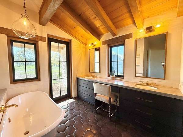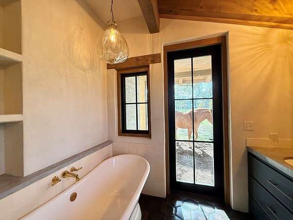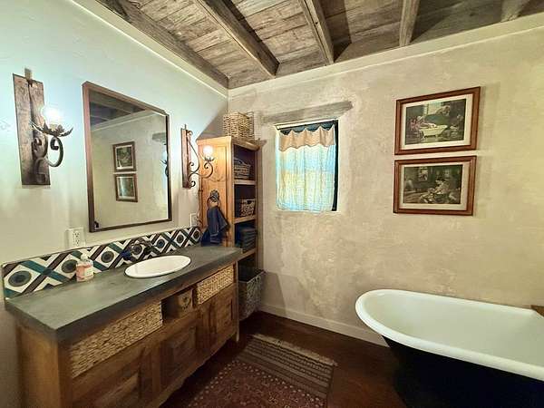 Beautiful custom home and guest house/barndominium on 37.66 AG exempt acres. This property is ideally located just 2 miles south of Harper, about 16 miles from Kerrville and 24 miles from Fredericksburg. The main home is custom throughout, with accents of Hill Country and Spanish-style/Old Country charm with modern and high end finishes. The compressed earth block construction provides energy efficiency, designed to keep the home cool in the hottest temperatures. The home has 2 bedrooms, 2 baths + office, features a beautifully landscaped courtyard, stained Saltillo tile, high end appliances, and easy indoor/outdoor living on the covered porch with fireplace. The home is also situated far off the highway on the cleared land, with many nice trees and room for horses or other animals. The barndominium has 1056 square feet of living space, 1 bedroom/1 bath with living and full kitchen and laundry. Attached is a 1600 SF workshop with large overhang and storage container with power. The property has two entrances off of Harper Rd and is fully fenced. The attention to detail on both the land and custom home has to be seen in person to be fully appreciated.
