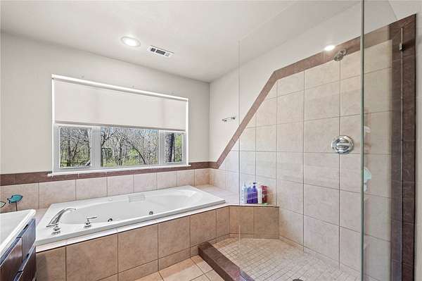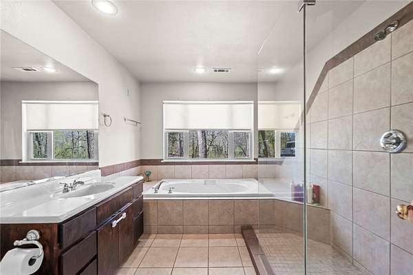 - Ceiling Fans, Eat In Kitchen, Pantry, Split Bedrooms, Tile Counters, Tile Countertop, Walk In Closets